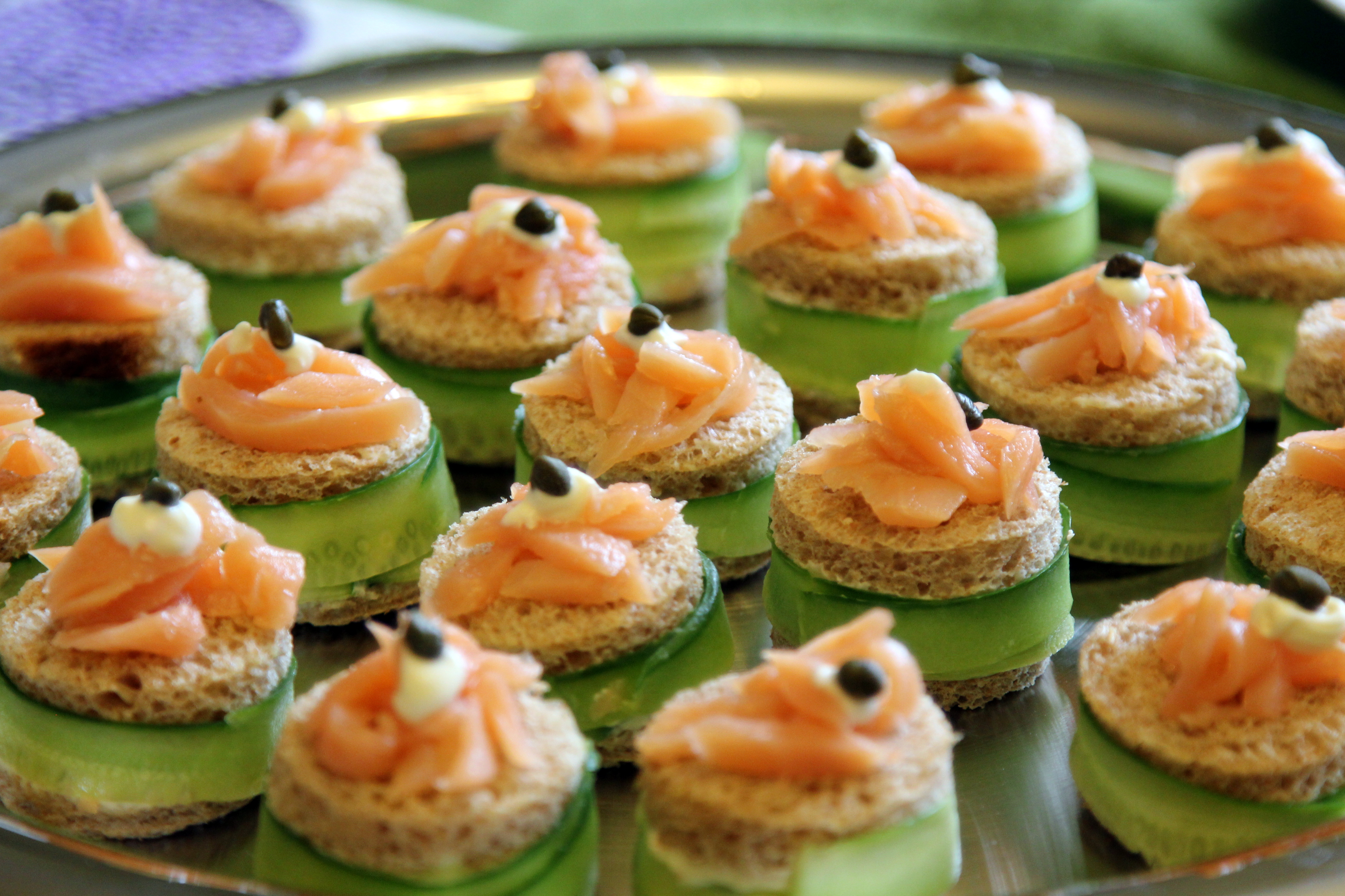 Cucumber and Smoke Salmon Finger Sandwiches with Creme Fraiche and Cream Cheese Spread