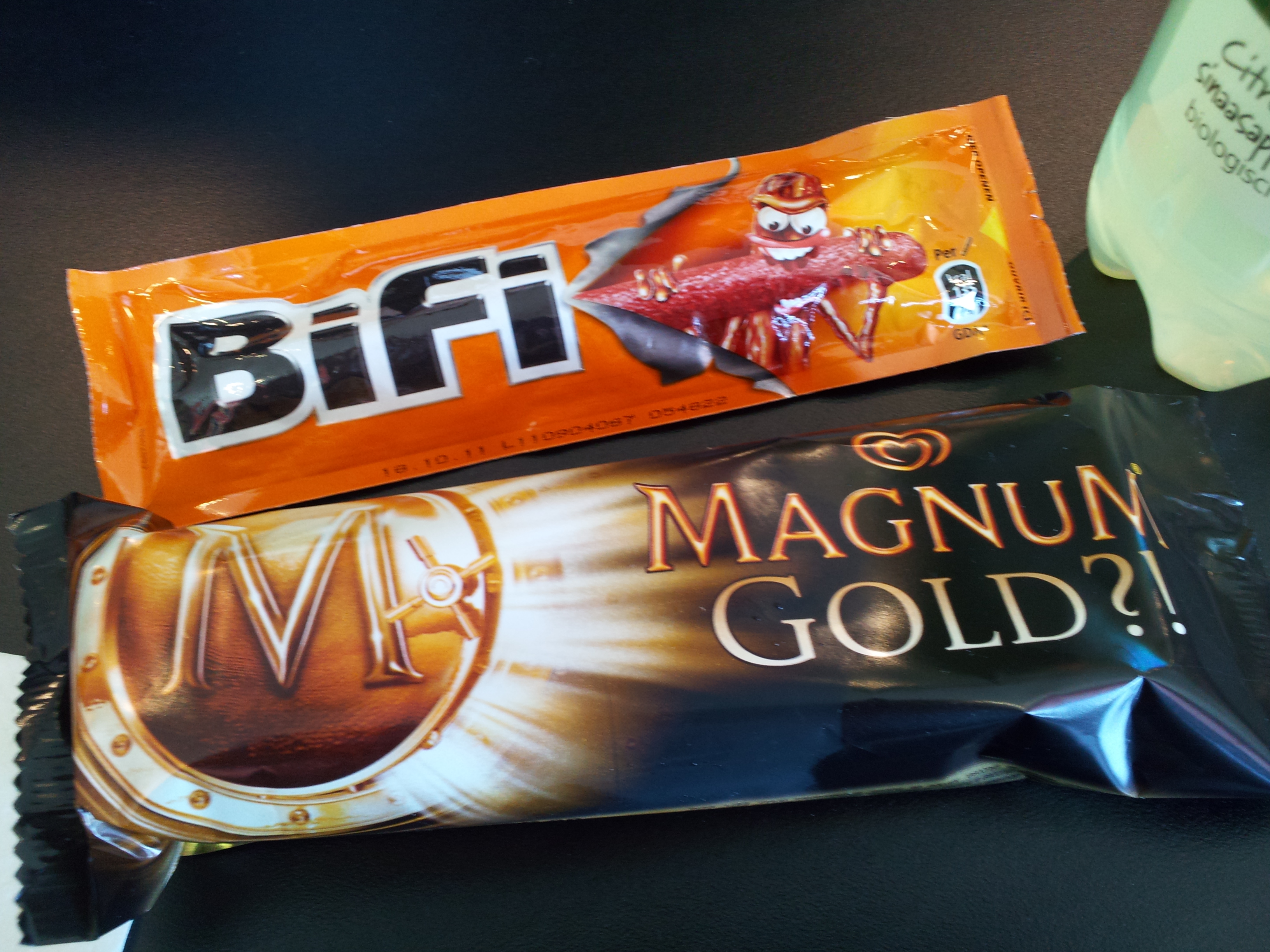 Bifi Snacks (shown with a Magnum ice cream bar, which is next! )