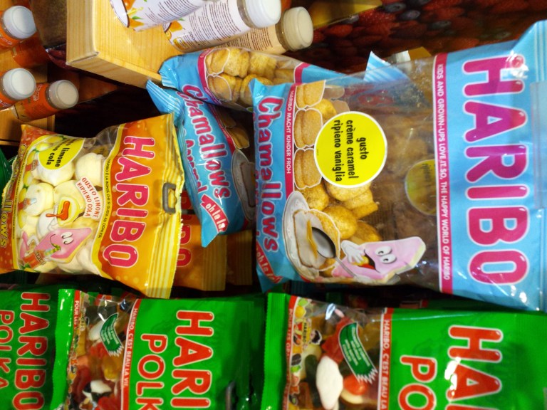 We get the regular Haribo gummy bears at home, plus a few other varieties, but we saw proabably at least 50 other varieties all over Europe, not so much in UK though. (The last picture – the Haribo Citro-Balla (funny name!) was our favorite! )