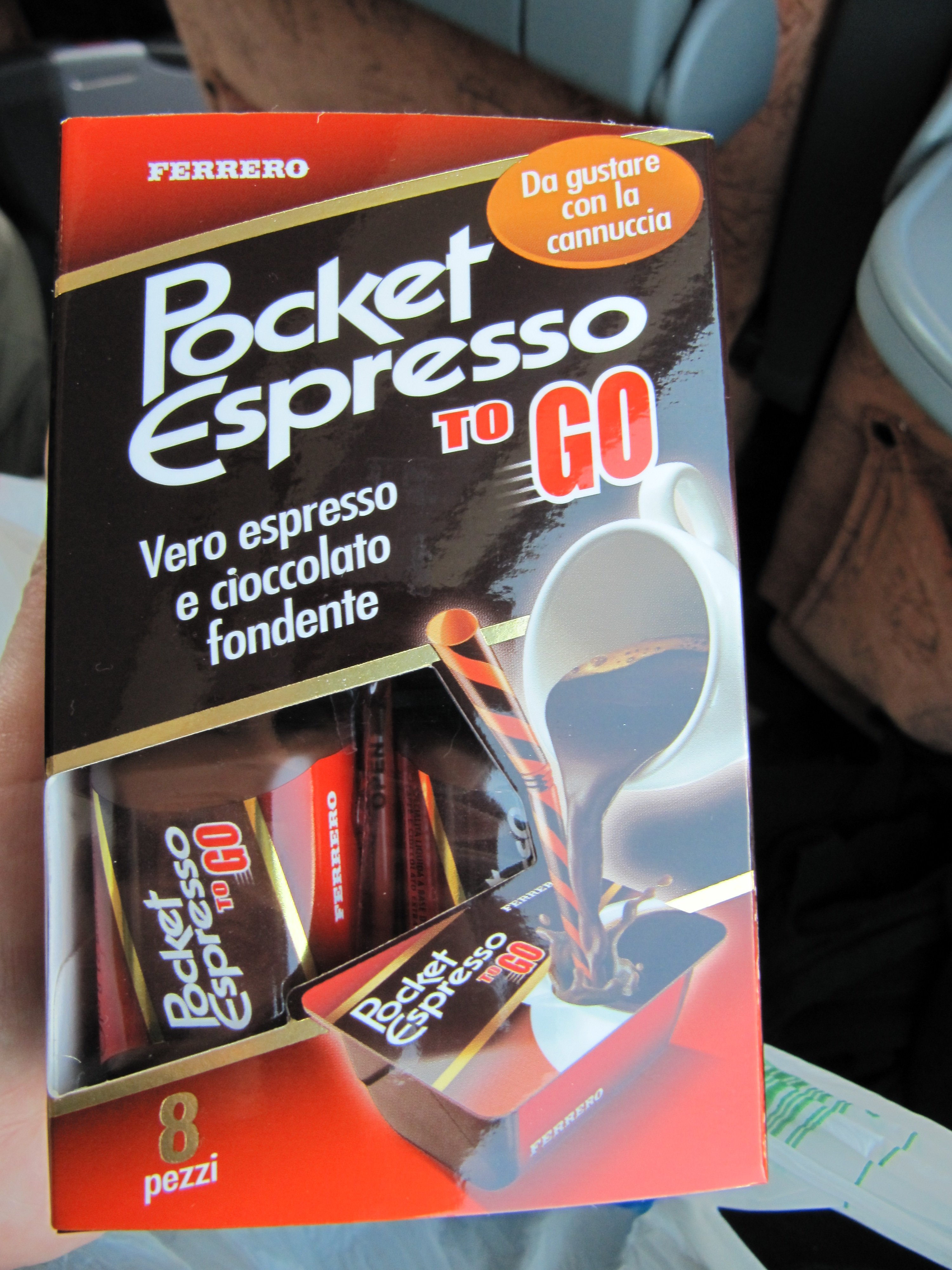 We spotted these all over the Autogrills in Italy. Autogrills are these all-in-one super reststops with self service cafeteria, coffee bar, market, and restrooms. I got a pack of 8 because it was so unique but I never expected it to taste so good! After doing some reading online at home, I realized there is a huge following on these little packs of caffeine goodness, and they are unfortunately only available in Italy right now. The “to go” version” was made for the hotter months, but during the cooler months, the Pocket Coffee Espresso is available instead, and it is in the form of solid chocolates with a shot of espresso within. The solid chocolate version is available on Amazon, sometimes!