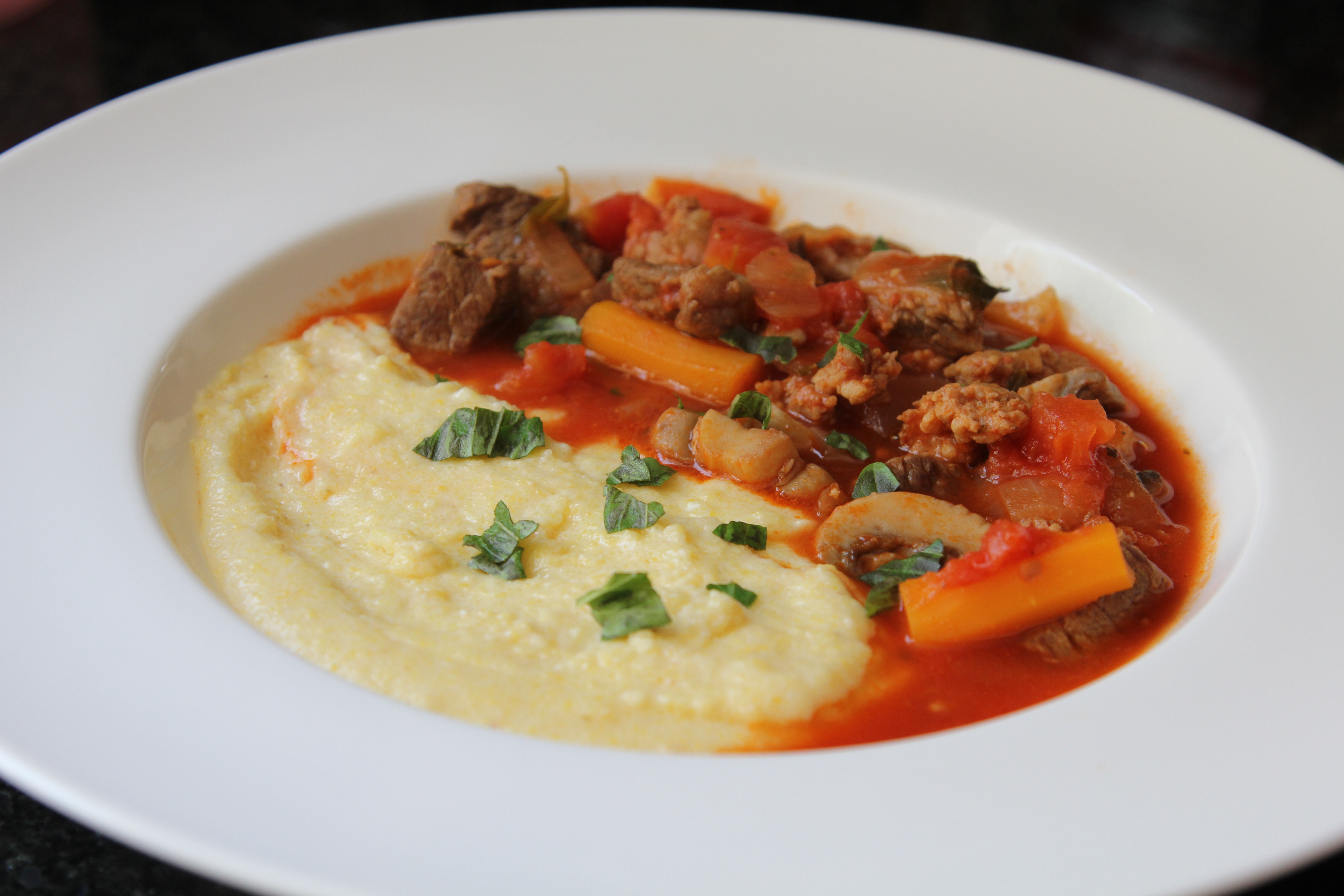 This is the recipe that I often refer to, but substitute here and there for ingredients I do have available – Creamy Soft Polenta with Meat Ragu