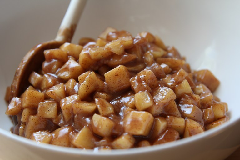 7. add the cornstarch + water mixture to the apples. Cook and stir until the apples start to thicken.