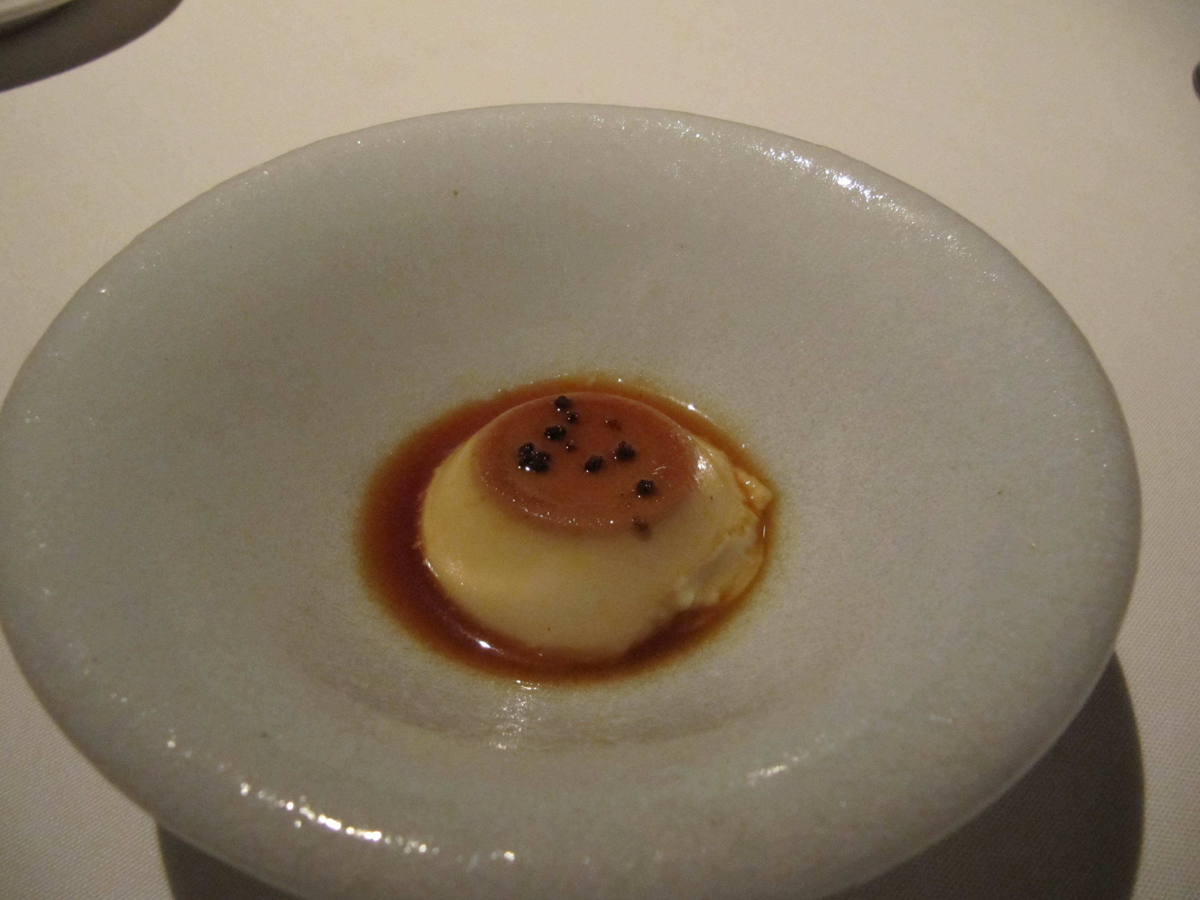 amuse bouche – foie gras flan with cumin seed caramel, espresso salt. I was pretty thrilled with this.