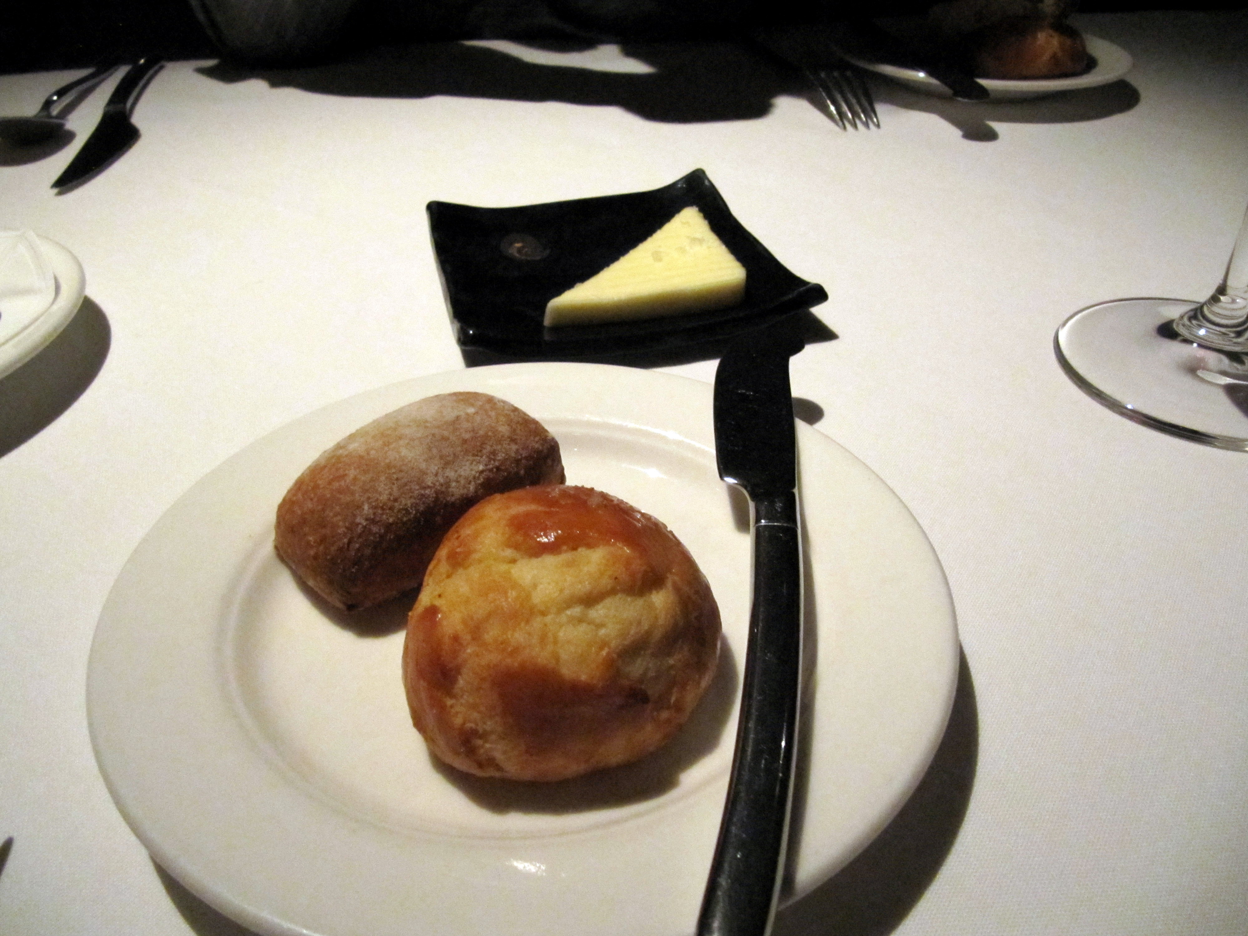 bread and butter. A server walks around with a tray of 5 different kind of bread and we can select as many as we want. Here I have the olive bread and the heavenly and buttery warm brioche. I can eat this brioche all day long..I wanted some fruit preserve with them.
