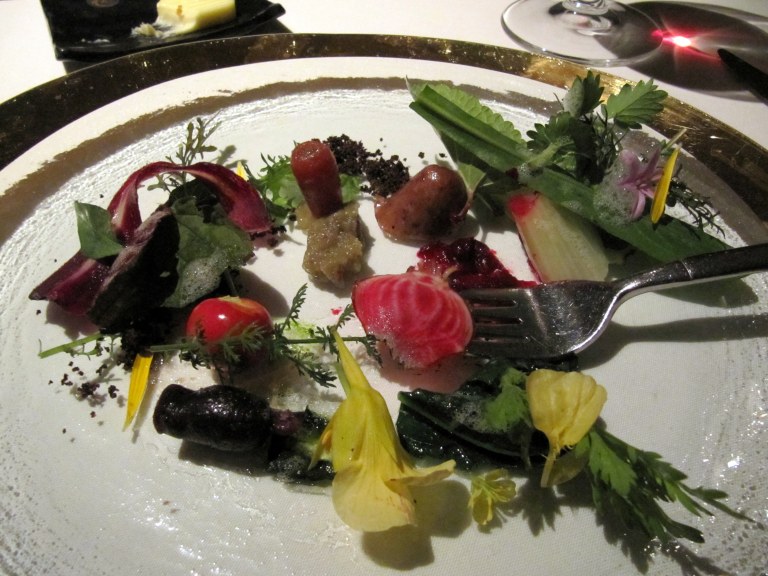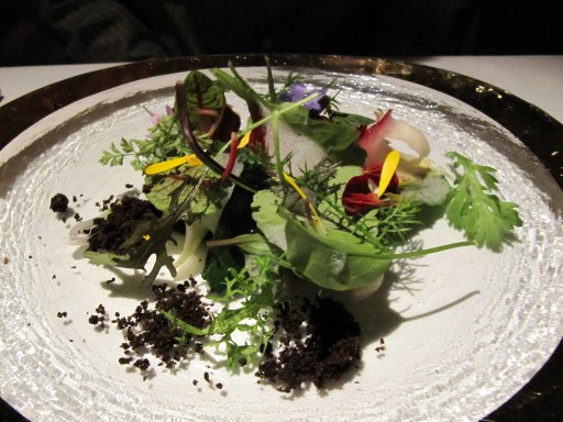 Thanks to our friends Brent and Lena, my husband Joe and I finally had the chance to dine (and to celebrate his birthday) at the two Michelin starred restaurant Manresa in Los Gatos, California. I’ve been a big fan of Chef David Kinch for quite some times now, for his inspirational vision along with his sustainable culinary practice. Those of you who have never heard of him, maybe you’ll know this instead – Chef Kinch was on Iron Chef America in 2009, against chef Bobby Flay over battle cabbage and won. Manresa is also on the lists of best restaurants in the USA as well as the best farm-to-table restaurants. And our dining experience at his Los Gatos restaurant certainly did not disappoint. Lots of new flavors, fresh ingredients, whimsical presentation, impeccable service…hmmm what else? I’ll just show and tell with some pictures. I only had my point-and-shoot with me so pardon the pixelated and blurry pictures.