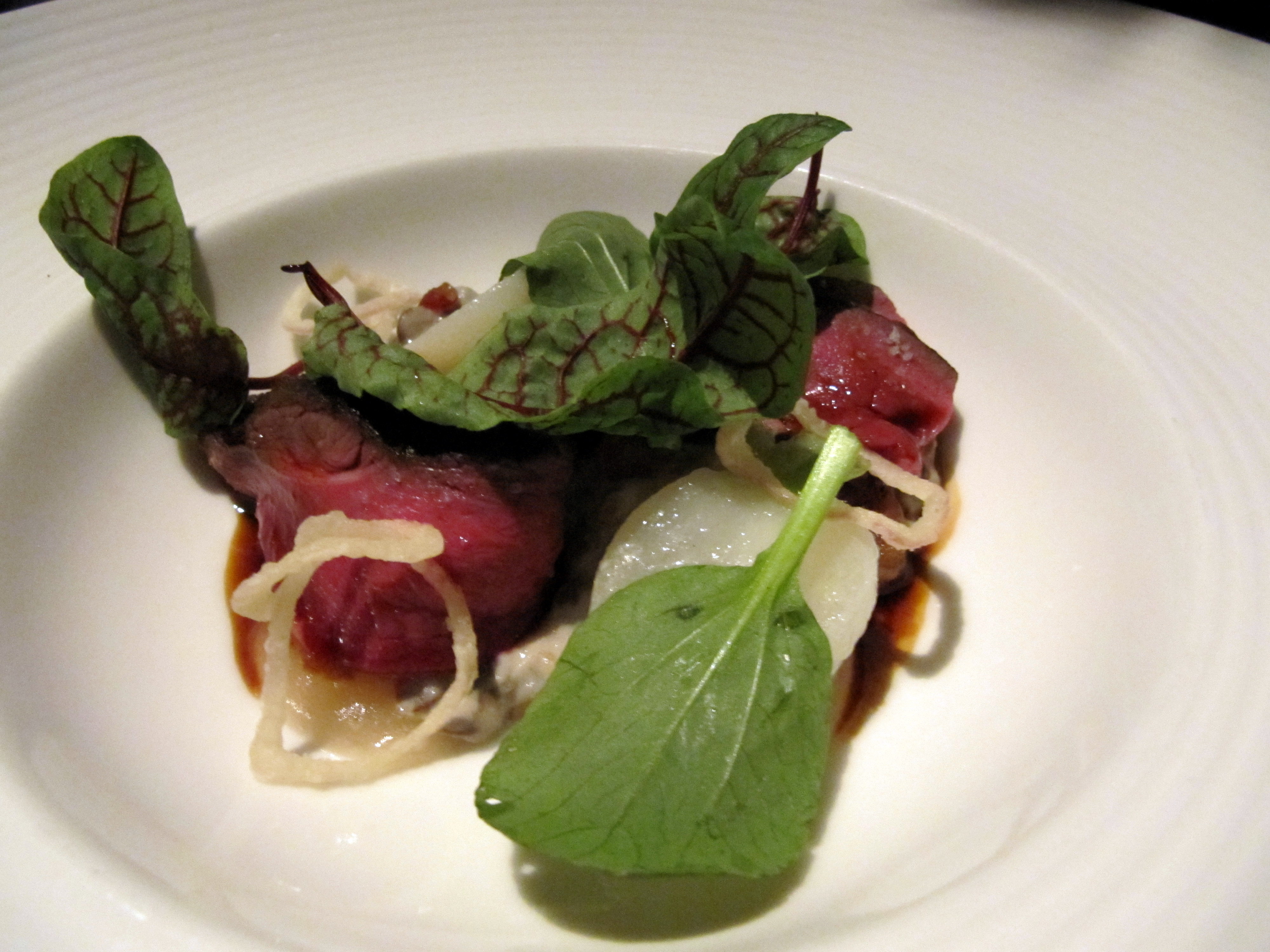 Joe’s 4th course: Saddle of Sikaroe deer, escabeche of dried pears, blonde lentils with mushroom fondant.