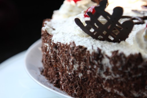 - Cut the chocolate sponge cake in two or three layers. Cover each layers with cream & cherries.