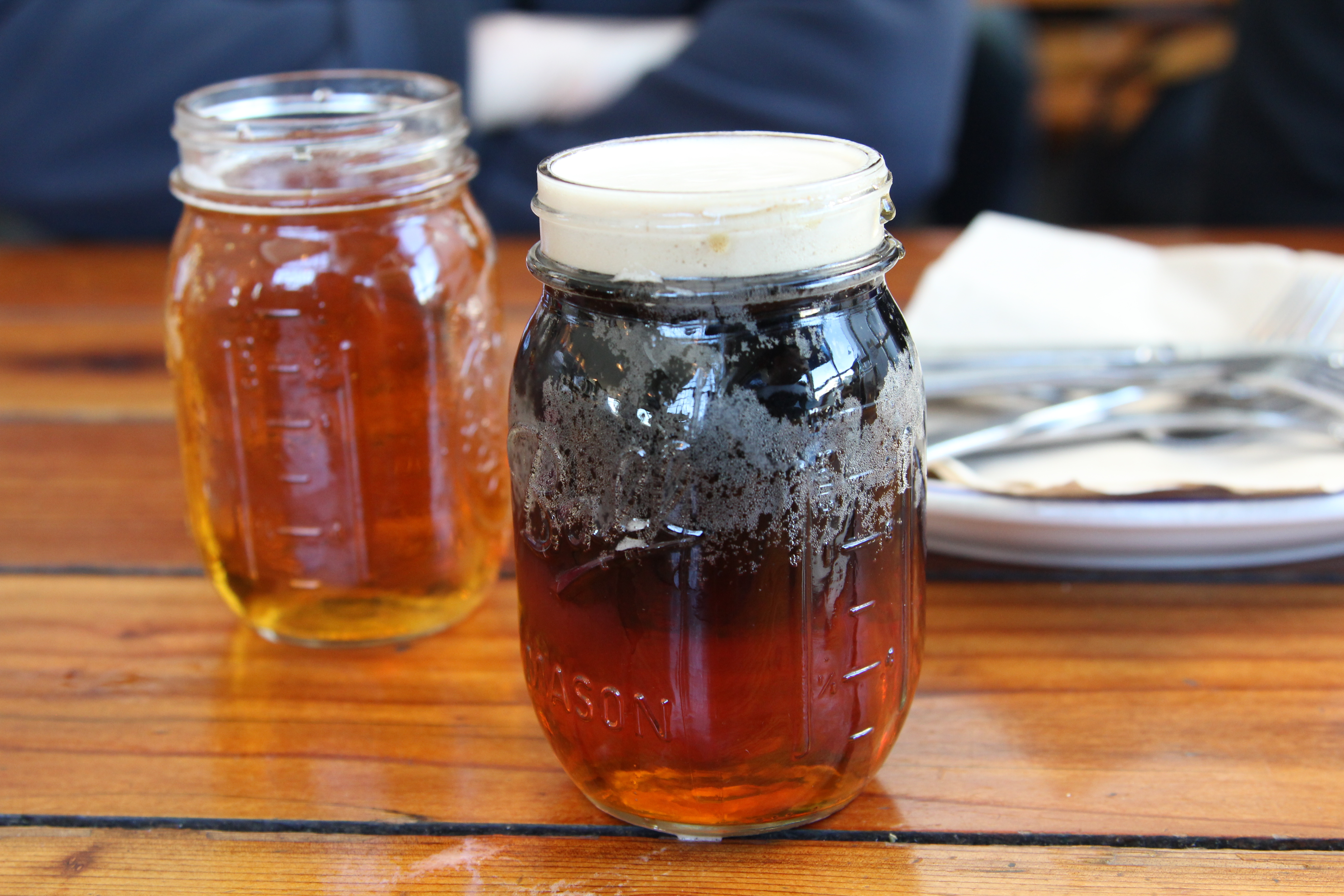 We washed the food down with some Mission Blonde Ale and a classic black and tan. Loved the mason jars.