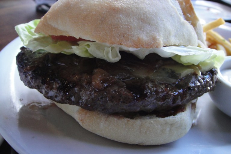 …Masami Kobe beef burger – 1/2 lb of Kobe, Morbier cheese, tomatoes, butter lettuce, grilled red onions & aioli on ciabatta served with a side of fries...I had a bite of this and those grilled red onions really made a great impression. The beef was buttery and very well-cooked.