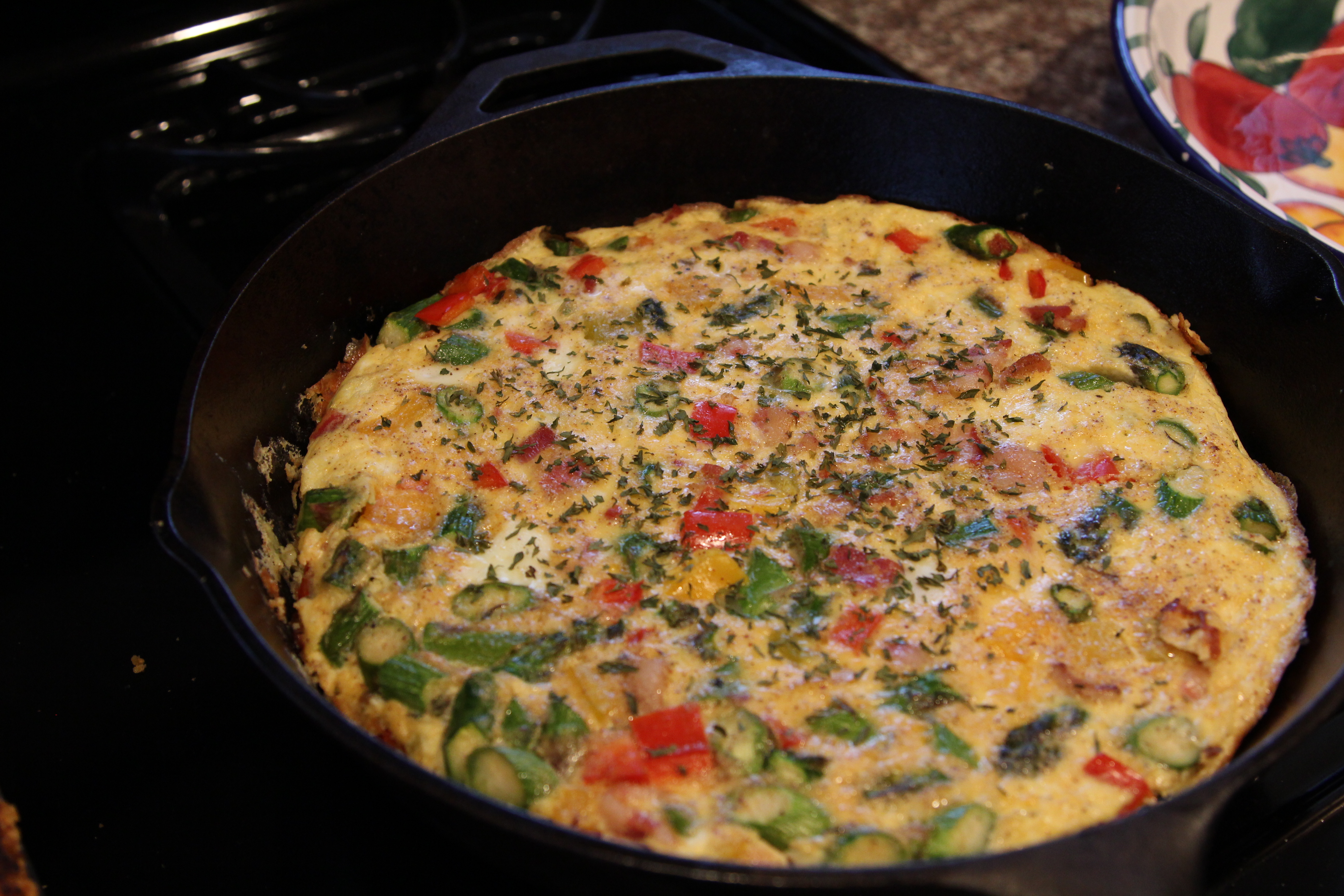 - Optional: If you would like to add cheese – Take your frittata out of the oven after it’s slightly golden brown. Turn the broiler setting on, sprinkle cheese on top of the frittata, put it back in the oven for 1-2 minutes.
