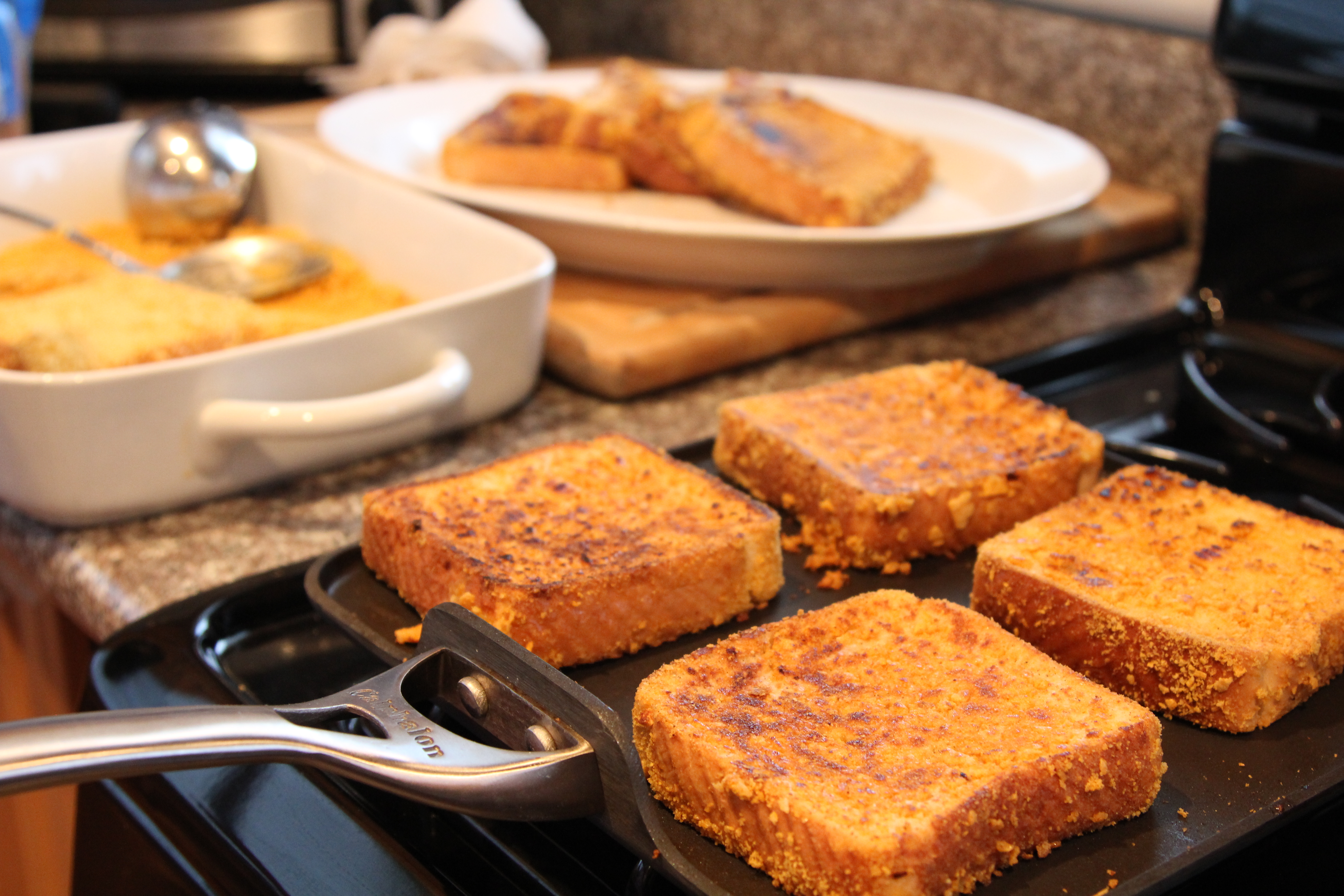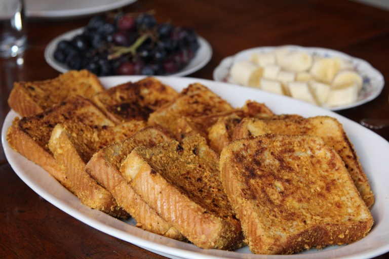 - Serve immediately or keep all the french toasts on a baking pan in a warm oven until you’re ready to eat. It’s great with jam, preserves, fresh fruit, or a big heaping pile of whipped cream!