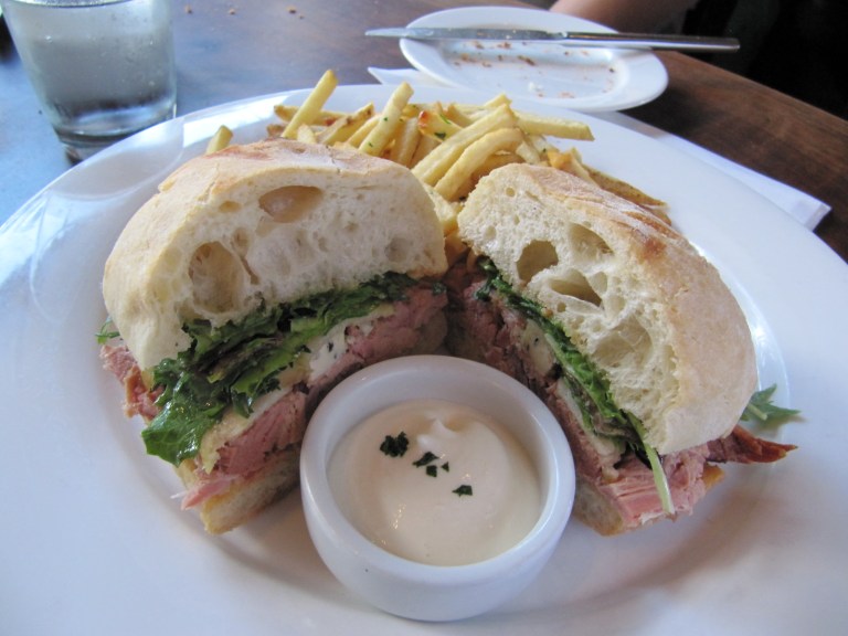 …7 hour house-made ham sandwich with Bleu d’Auvergne, mutsu apple, roasted hazelnut butter and organic baby red mustard, served with fries and aioli… So tender! the sweetness of the apple really made the dish.