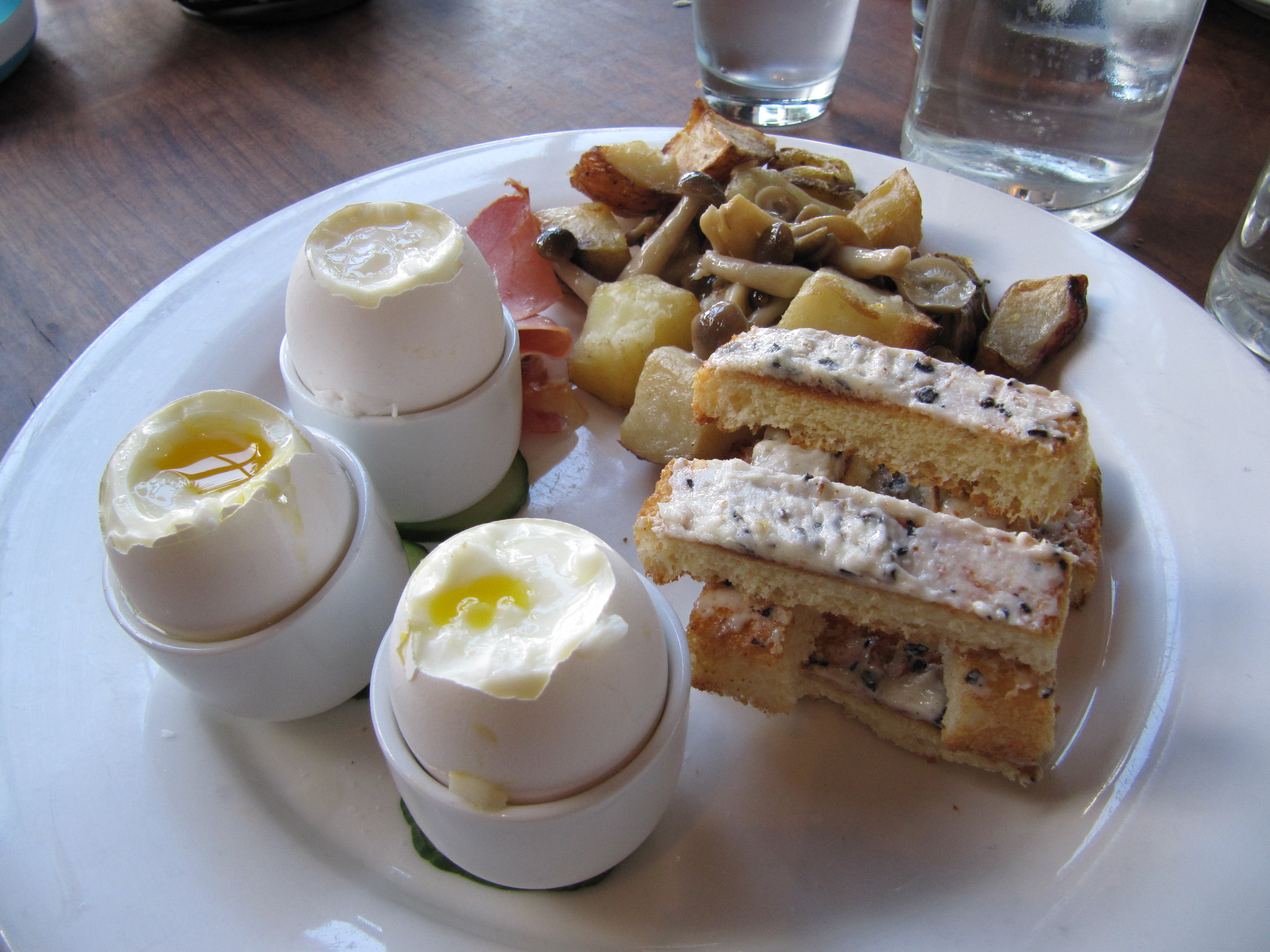 Can you taste the vanilla in the cap’n crunch toast? And yes, I always have leftover herbs! Next time will use in a frittata! I just saw a spotlight on Le Garage recently on TV. Now I absolutely have to go! I love soft-boiled eggs, too. What a nice bro-in law you have! Yum to every picture and description.