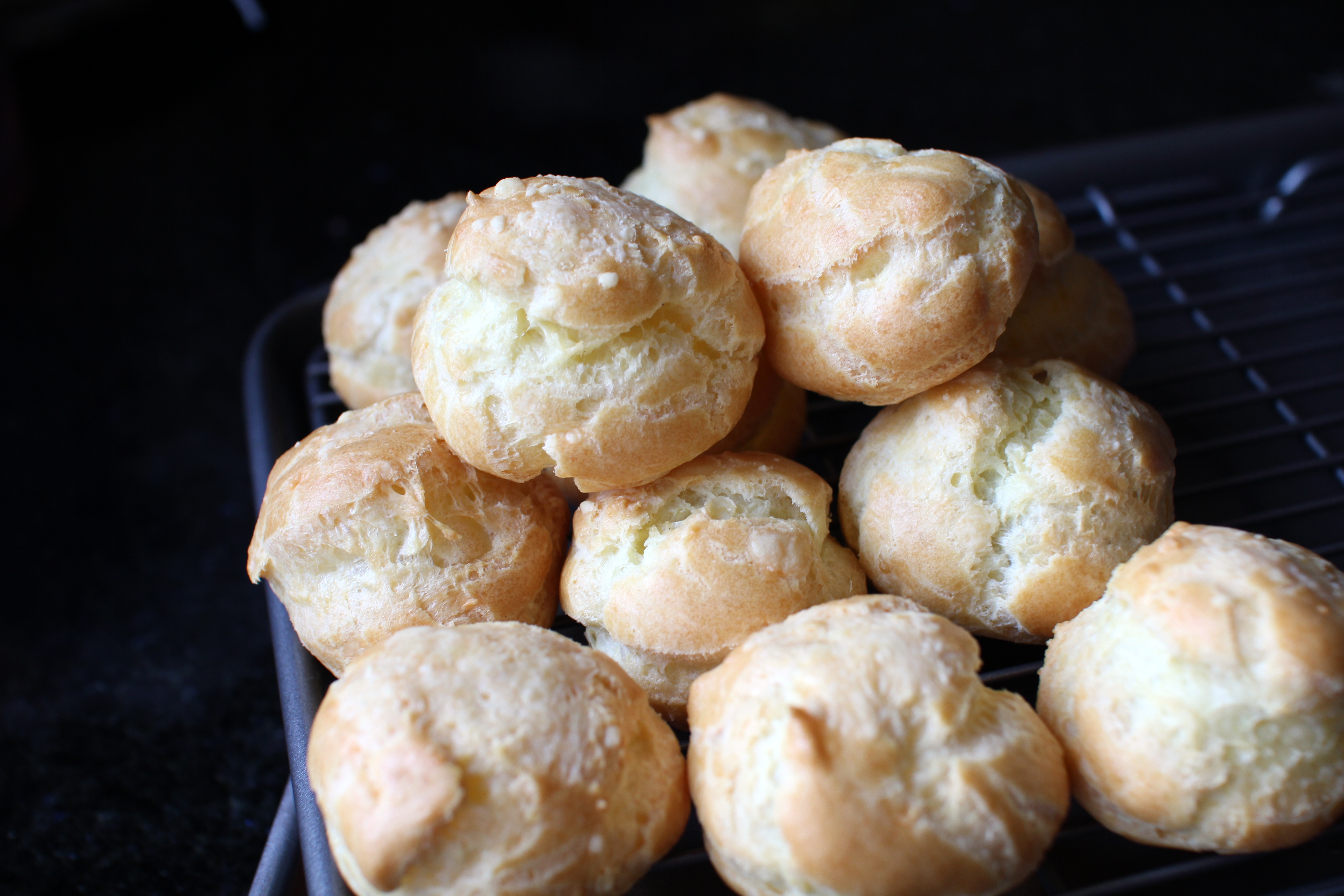 Cream puffs are one of my favorite desserts! A buttery and flaky shell filled with custard and jam, sometimes topped with chocolate… That’s perfection to me. But, it’s not something I ever thought about making at home. Growing up, I remember seeing those perfectly lined up swan cream puffs at fancy buffet’s dessert line (you know what I’m talking about) and watching elite French master pastry chefs making croquembouche on tv. All this gave me the illusion of the cream puffs being a highly technical and difficult dessert that can only be made by trained professionals.