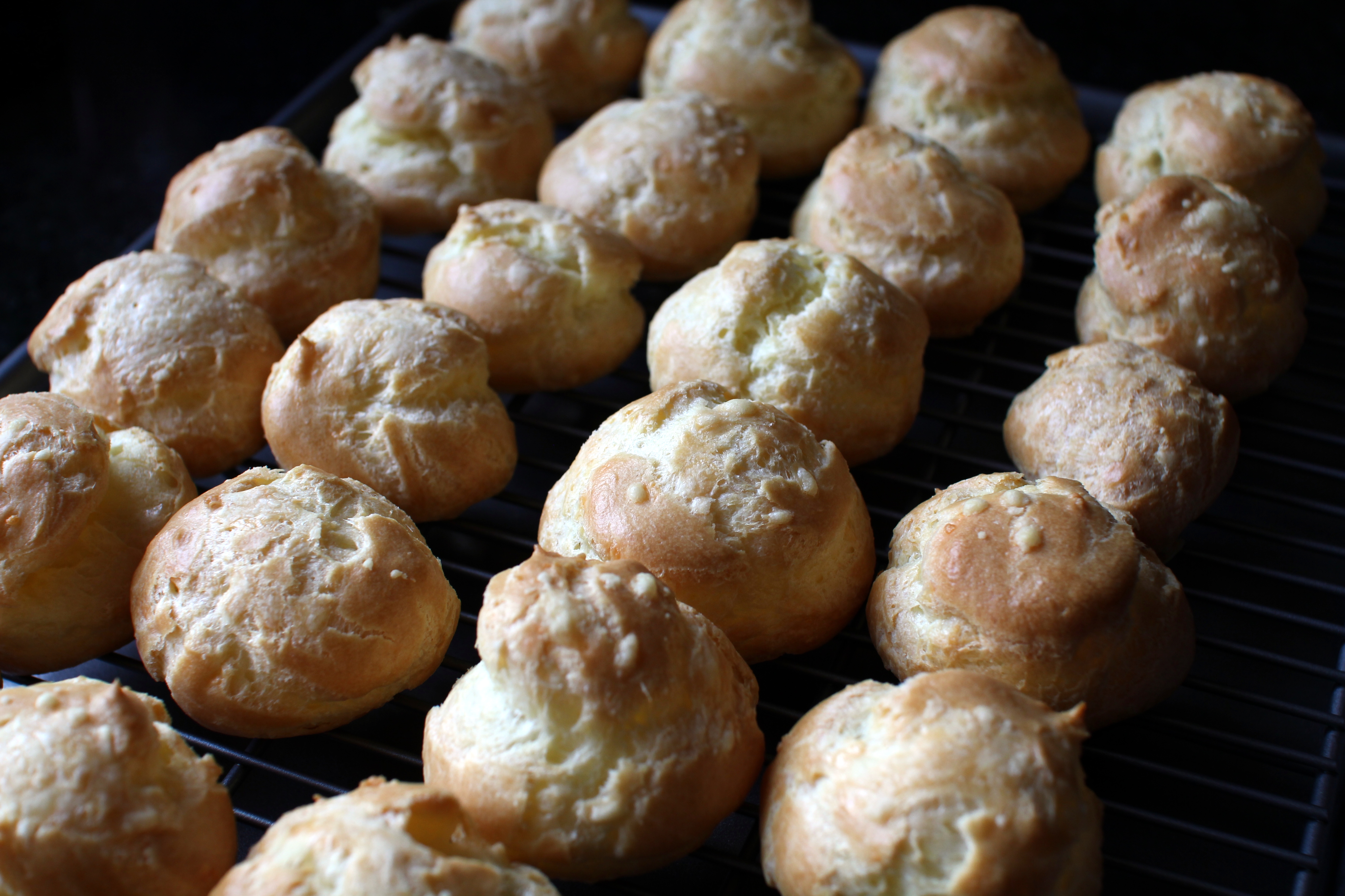 - For savory gougeres, I added finely grated gruyere cheese to the batter as well as a sprinkle of it on the top prior to baking. I served these cheesy goodness with tapenade, onion jam, and a cheese platter. But they are delicious on their own. Make them smaller for a party’s bite-size appetizers, and make them bigger to replace those rolls on the dinner table.