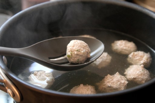 Homemade shrimp and pork meat balls. [ground pork, shrimp paste, ginger, scallion, soy sauce]