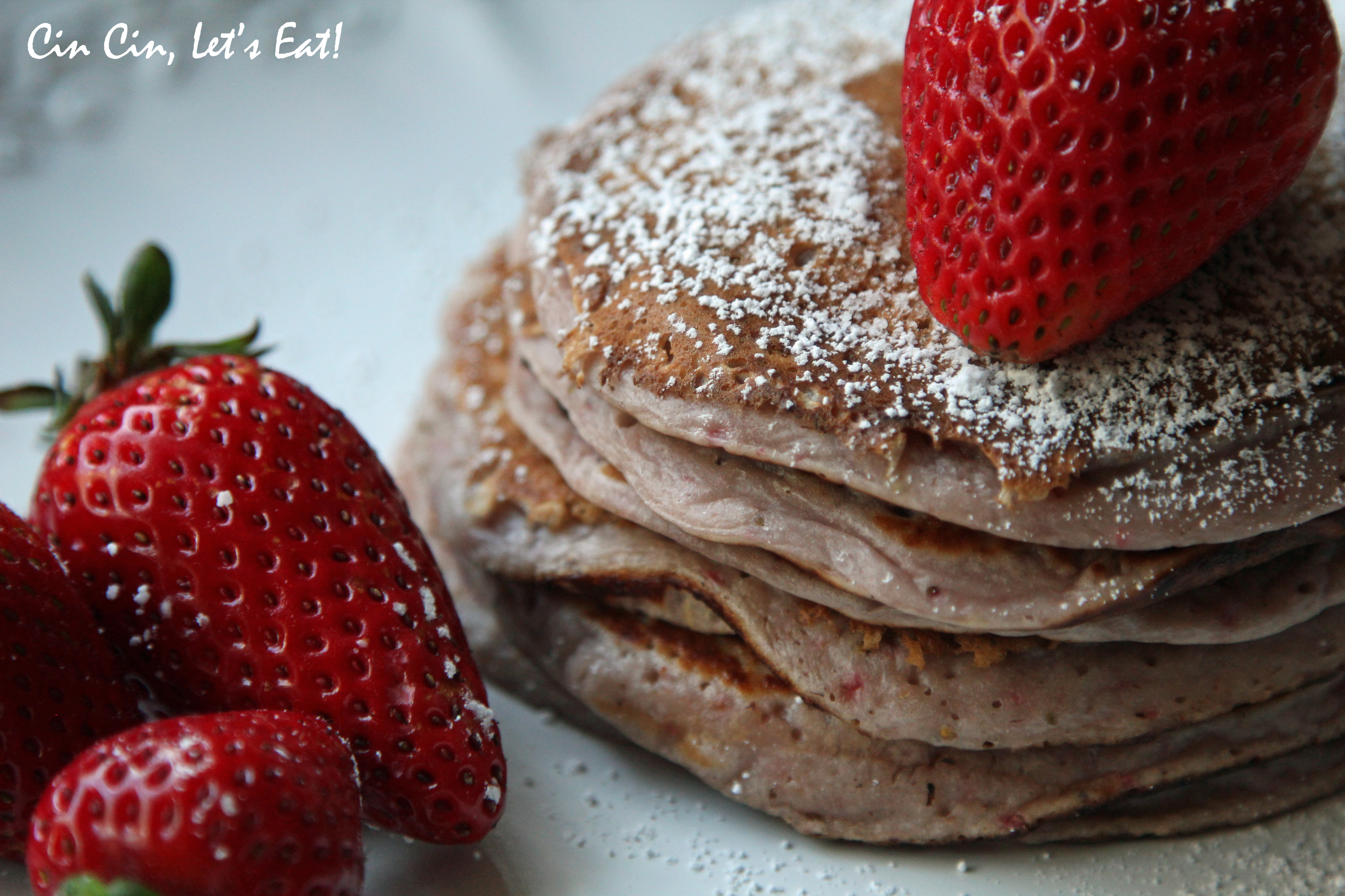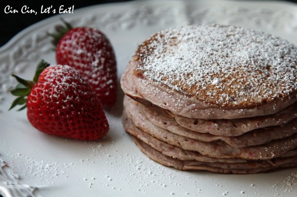 Strawberries are everywhere right now! I can’t help but to buy a whole crate of these sweet and succulent berries every weekend at the farmers’ market. Last night I was craving pancakes for dinner, so I added some strawberry puree to the batter and had strawberry pancakes for dinner!