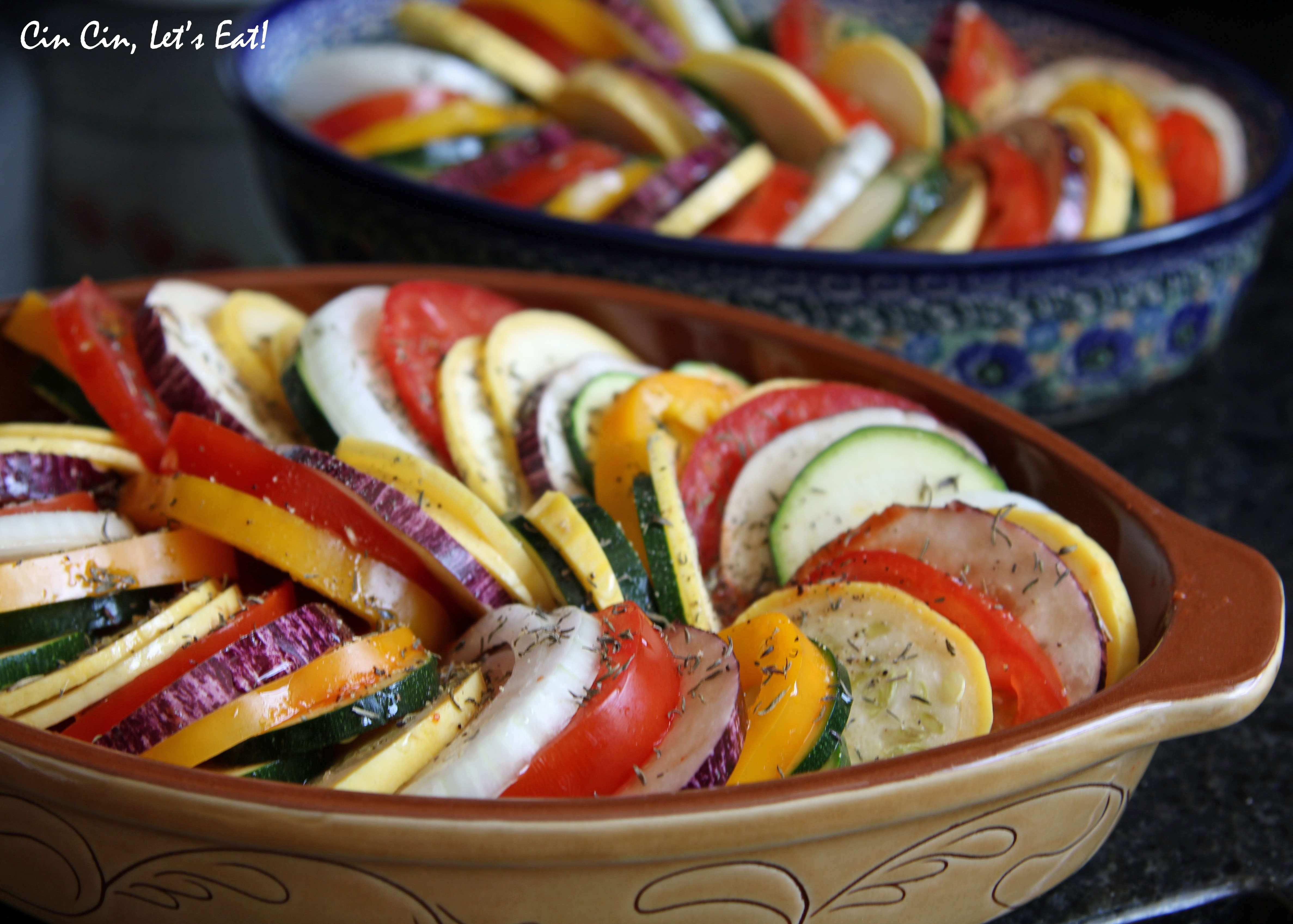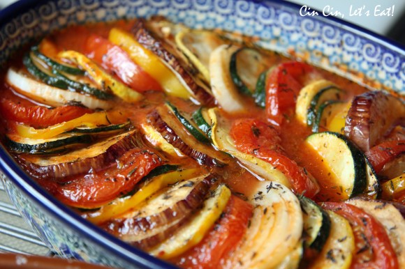 I didn’t use cream cheese like the recipe indicated. Joe charred up some slices of French baguette, and I let my guests assembled their own sandwiches. Burrata cheese was place alongside the bread so people had the option to either schmear the baguette with it or simply place a dollop on top of the vegetables. Burrata was a nice addition to the dish, it’s buttery quality added a layer of richness to the dish, yet it did not overpower the essence of the vegetables. The ratatouille can be assembled a day in advance, and can be baked hours prior to serving as it is perfectly delicious at a lukewarm temperature. It’s a great dish for potluck as well, guarantee to be a huge hit!