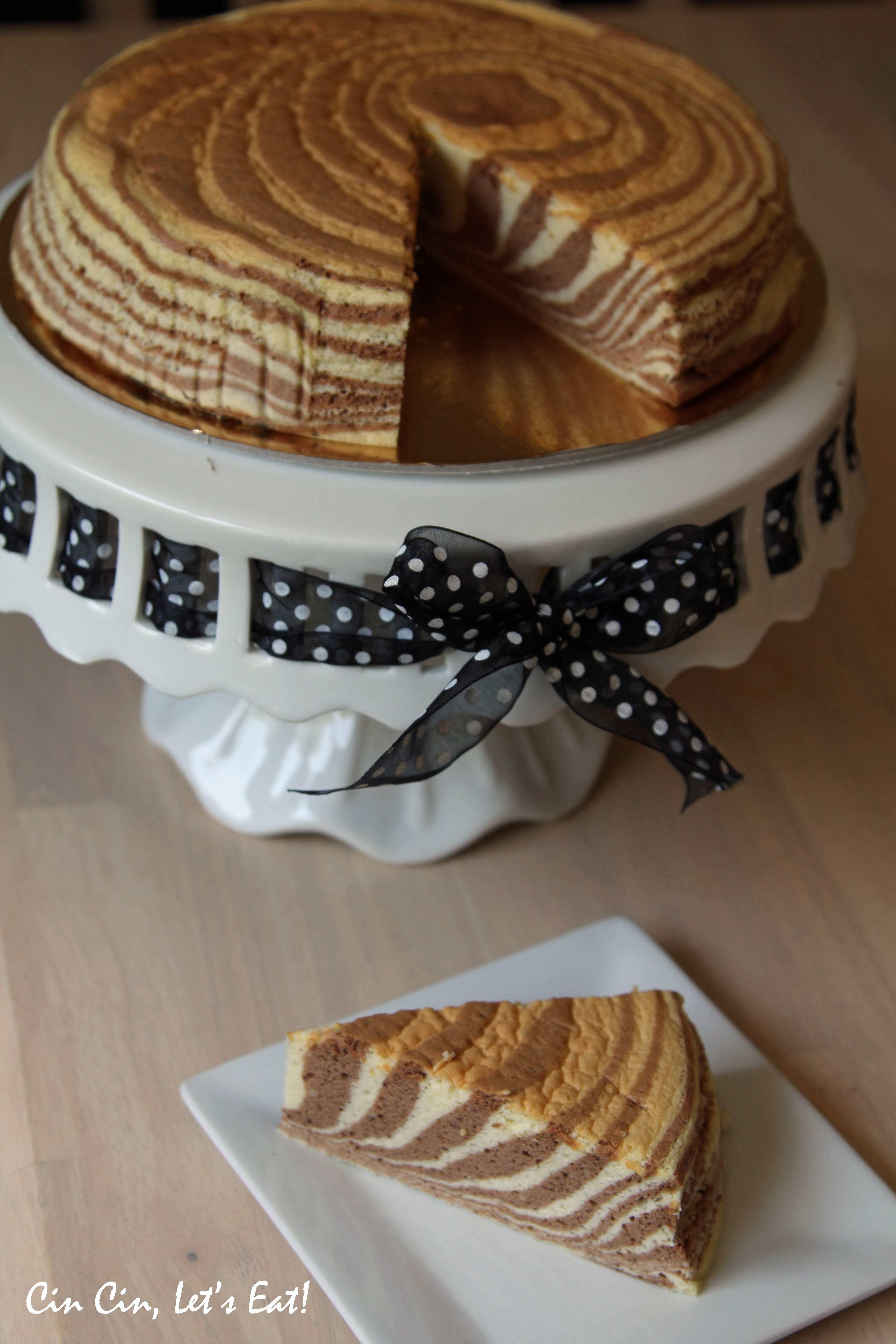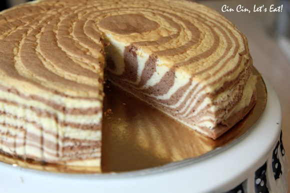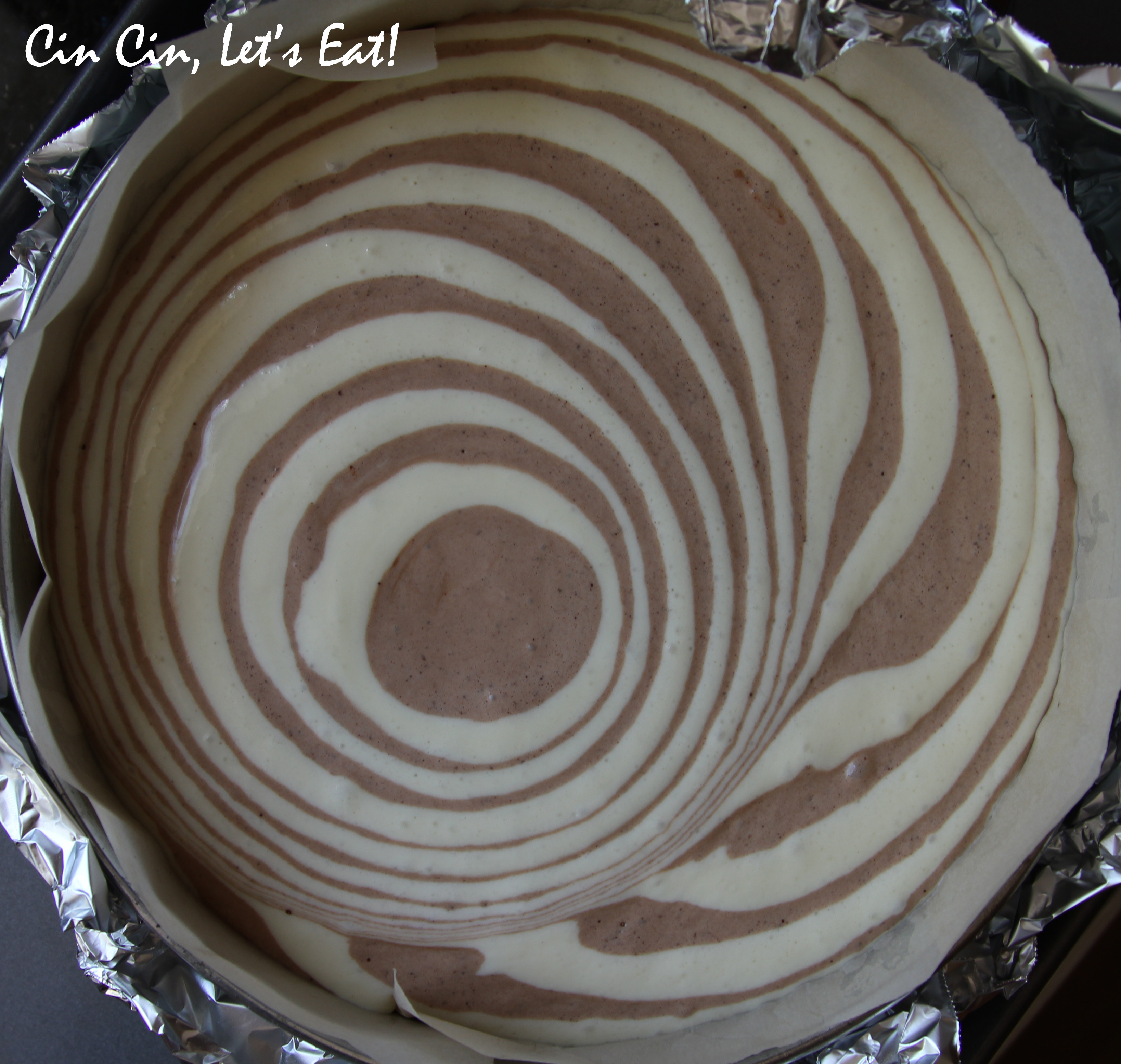 For dessert, I tested out a really visually awesome dessert I came across on Pinterest – Zebra Cheesecake from NotQuiteNigella. I’m such a sucker for animal prints, and the beautifully arranged pattern is just too hard to resist. Come on, look at it! Even if it doesn’t taste good, it still looks stunning! And by the way, it tasted AMAZING! It’s not the typical cheesecake one would have in mind. It’s very light, airy, and cake-like; Similar to a Japanese-style cheesecake but even lighter. Think of it as a slightly denser and creamier chiffon cake. The ingredients don’t need to be adjusted, they’re perfect the way it is.