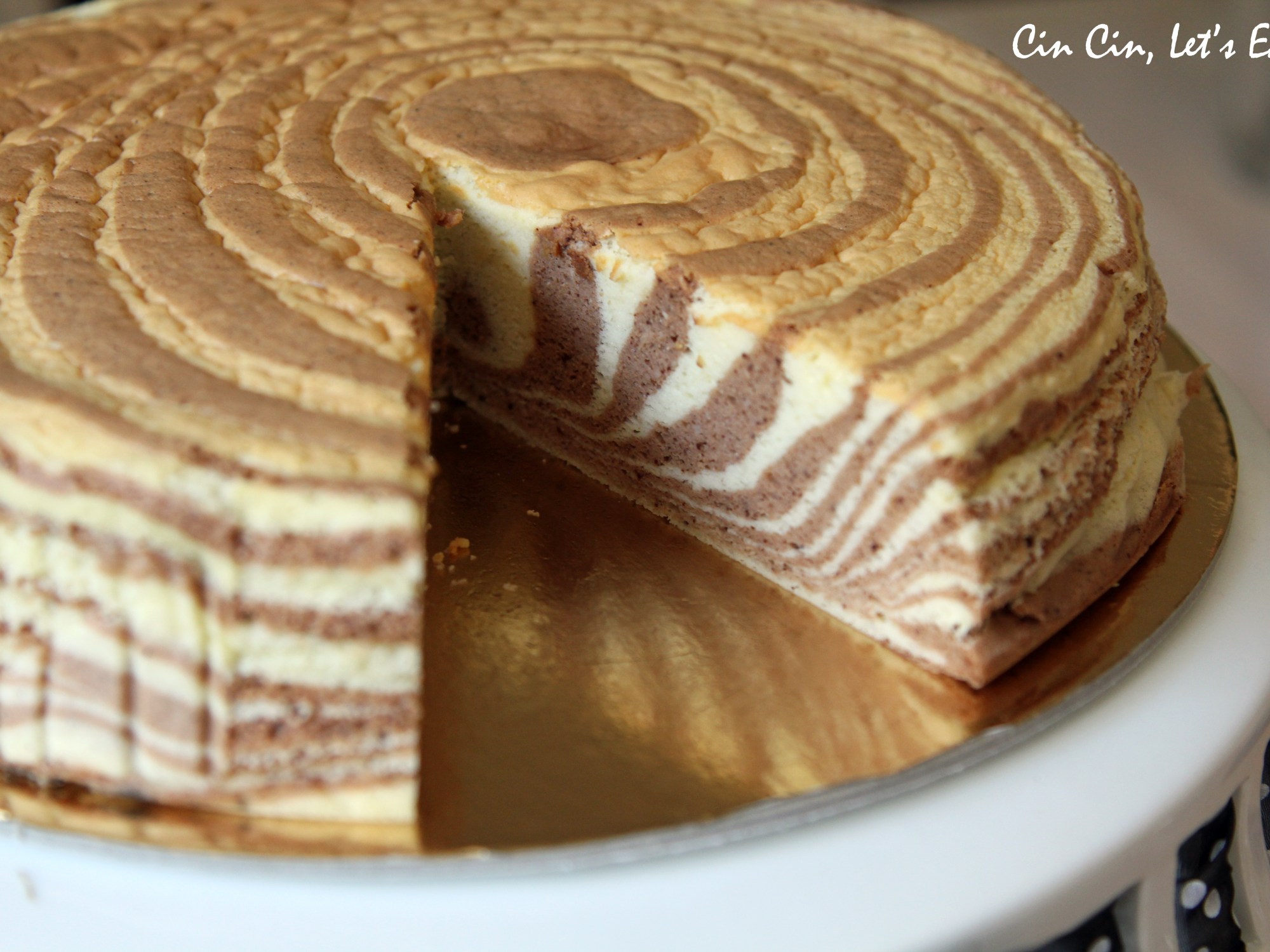 I was worried during the process of alternating of chocolate and cream batter. The batter didn’t stay in the center of the pan as it spread only towards one side. But have no fear! Keep going and the batter eventually spread evenly throughout the pan. I actually liked the unique and non-uniformed look better.