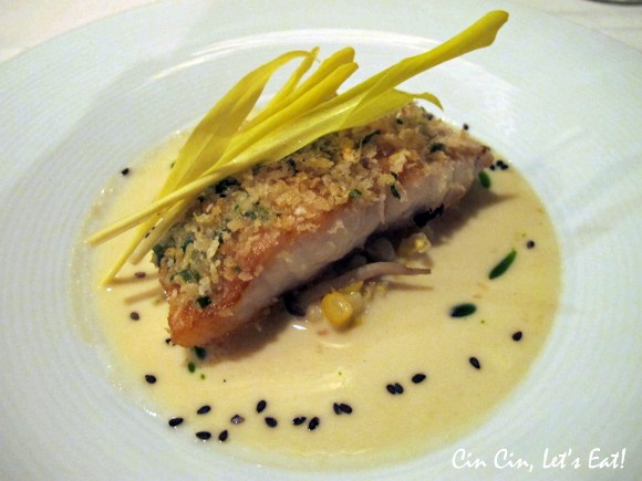 that corn shoot on top was really fun to eat! The ginger crust was sweet, complimented the perfectly-cooked fish well.
