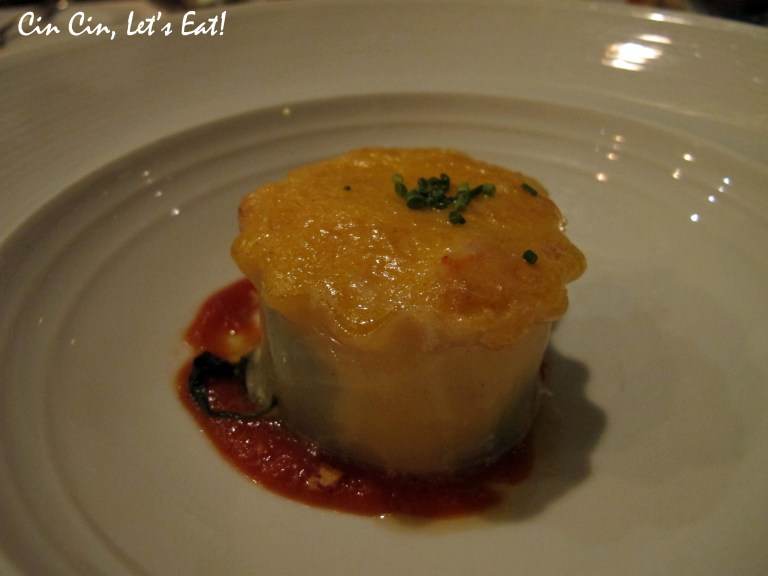 This was like a creamy seafood (lobster, crab, scallop) gratin, wrapped together with a sheet of lasagna noodle then baked. Ideal comfort food!