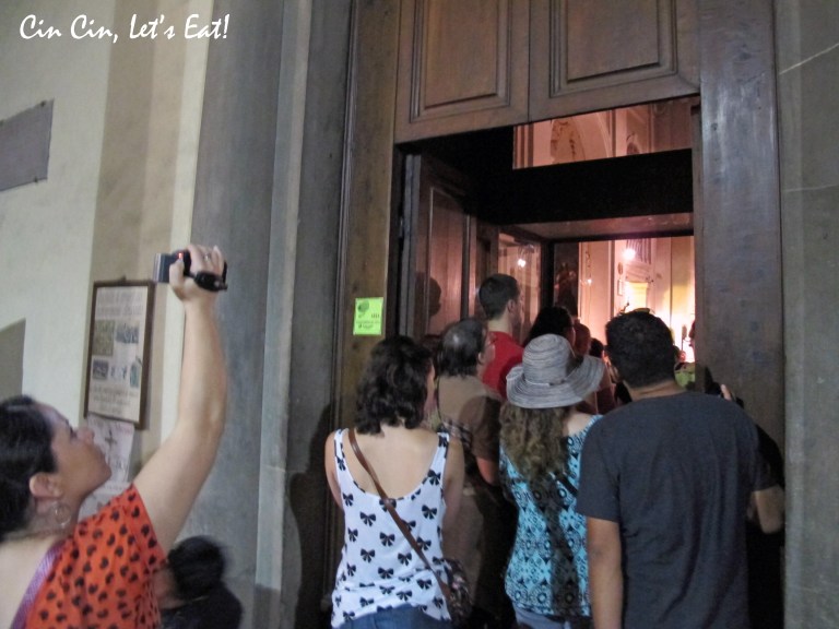 I finally got to try bistecca fiorentina (Florentine-style steak)! Big T-bone steak grilled over open fire, seasoned with nothing but salt, and olive oil. oh my goodness! I probably could have eaten the whole thing but I ordered a smaller portion, which the steaks were sliced for me and placed over an arugula/rocket salad with pecorino. The English translation on the menu said that the steak is served “bloody” and I can see that would scare off some customer. I like my steak served medium rare, and this was probably more towards the rare side (as the traditional bisetecca fiorentina should be), but expertly grilled, NOT bloody or anything. The meat was tender, juicy, smoky, well marbled. The spiciness from the arugula and the nuttiness from the pecorino were the perfect pairing for this. I enjoyed my steak with a bottle of brunello di Montalccino. What an awesome night.