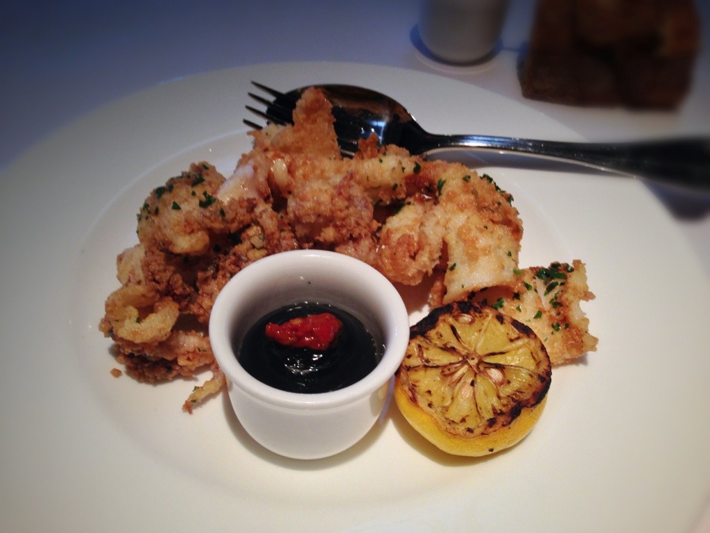 Crispy Monterey calamari with aioli nero. Loved that the meyer lemon was grilled, this added more flavor to the juice.
