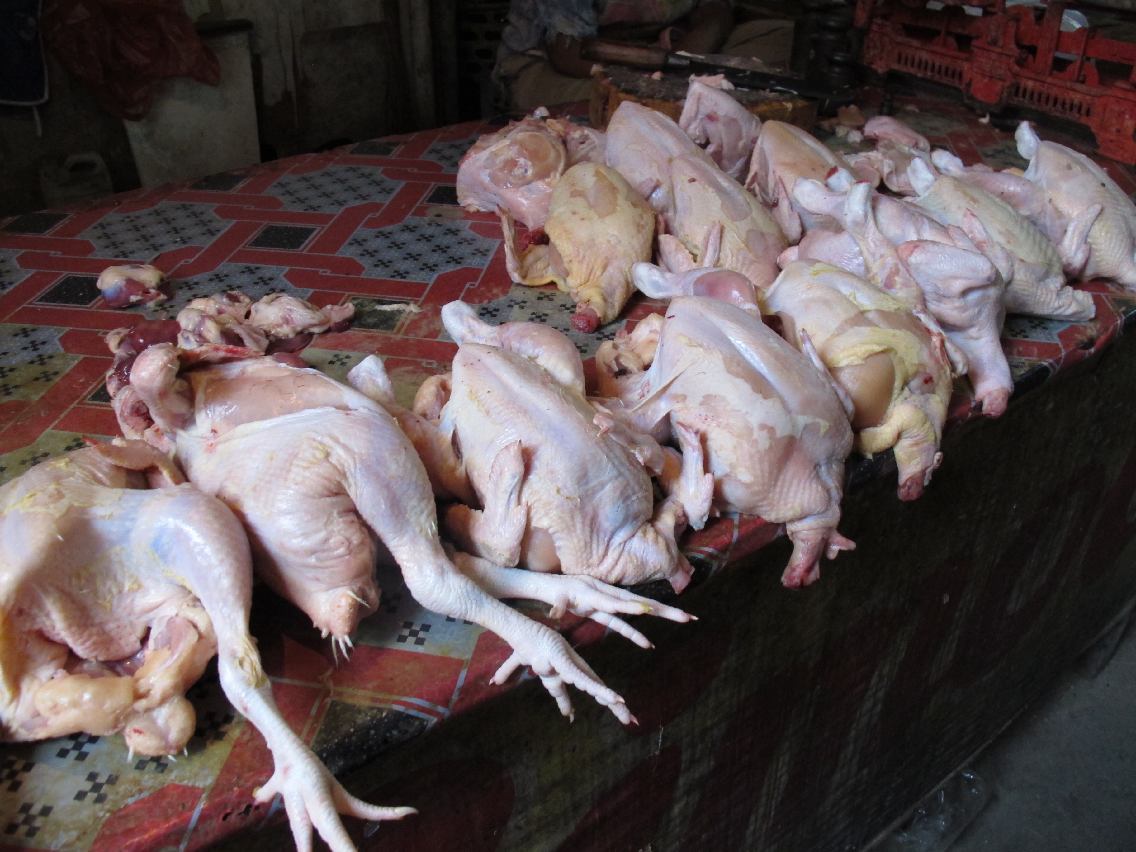 |Below| Inside the market, lots of freshly butchered meat on display. Since the meat is so fresh, it doesn’t attract flies just yet, most of them are still slightly warm.