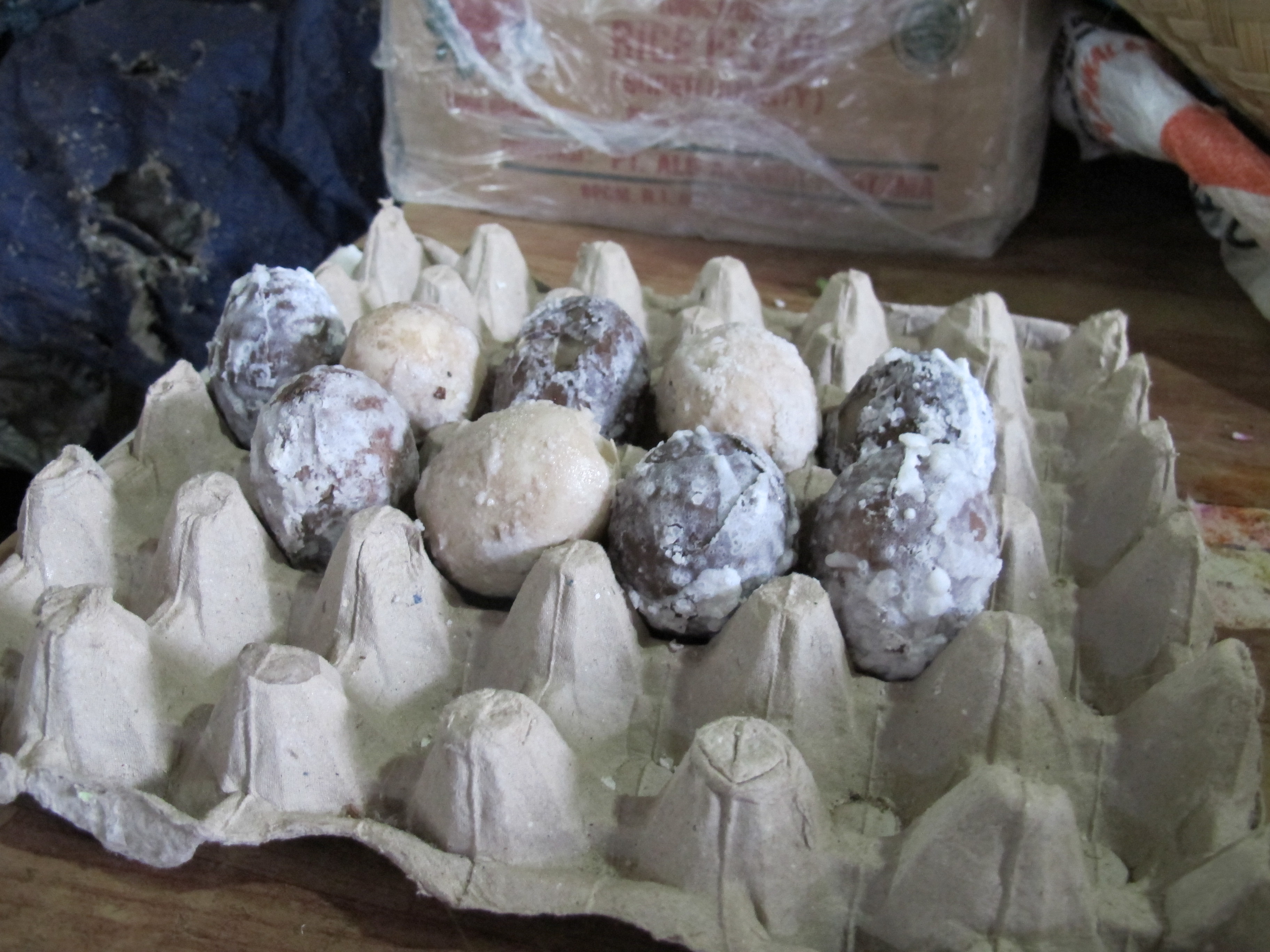 |Below| The tiny baskets filled with flowers and goods are offerings to the Gods. You’ll see plenty on the streets, try not to step on them. On the right, fermented eggs.