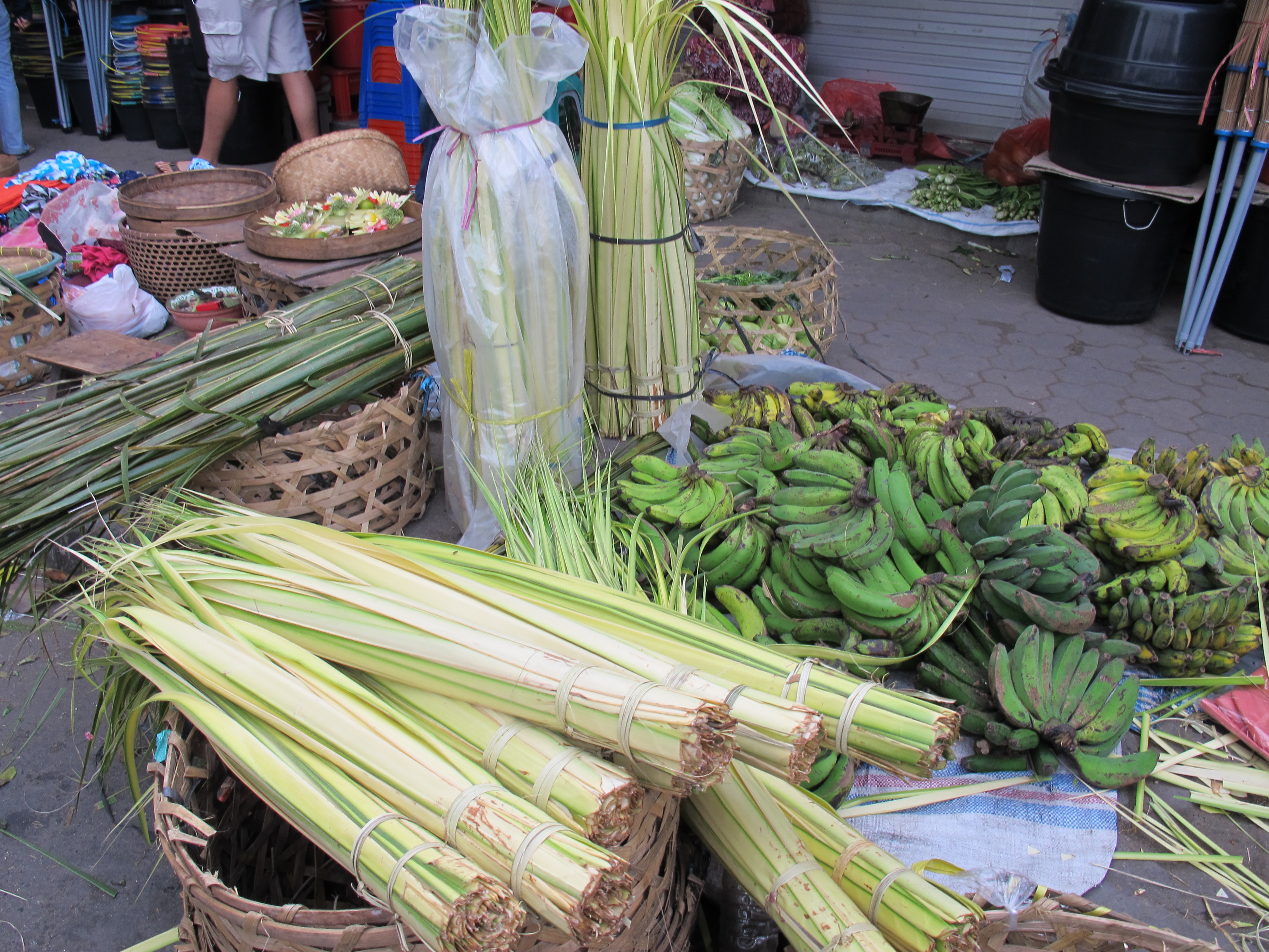 |Below| A quick breakfast or snack – coconut and rice with sweetened syrup, wrapped with a banana leaf.