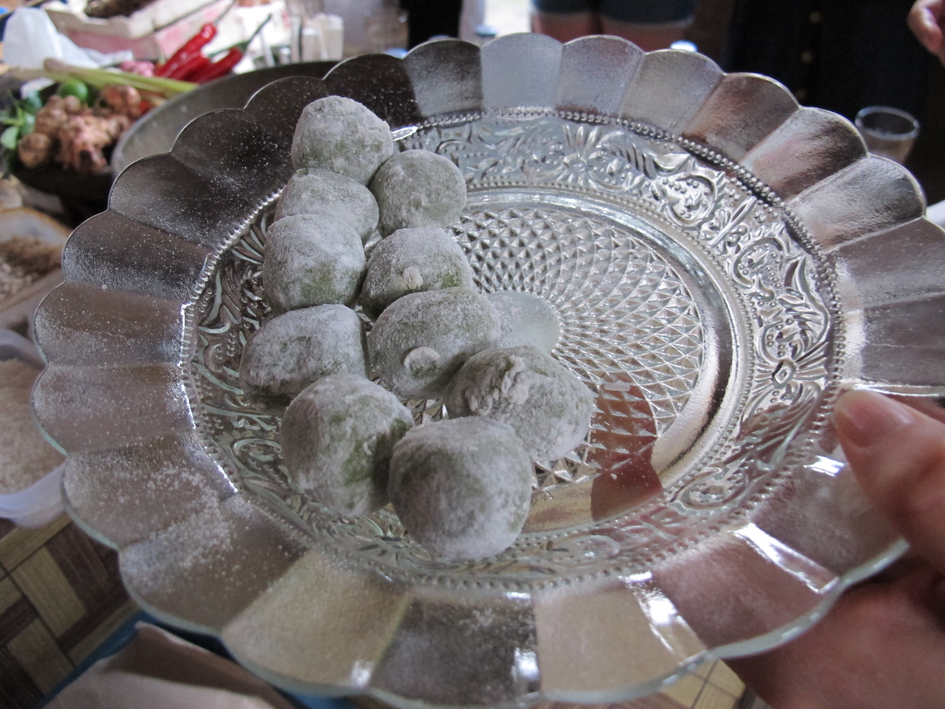 |Below| What a traditional Balinese breakfast would look like, cakes made out of potato starch or rice flour. Very similar to some of the Chinese cakes I grew up with. The one on the right tasted like mochi.