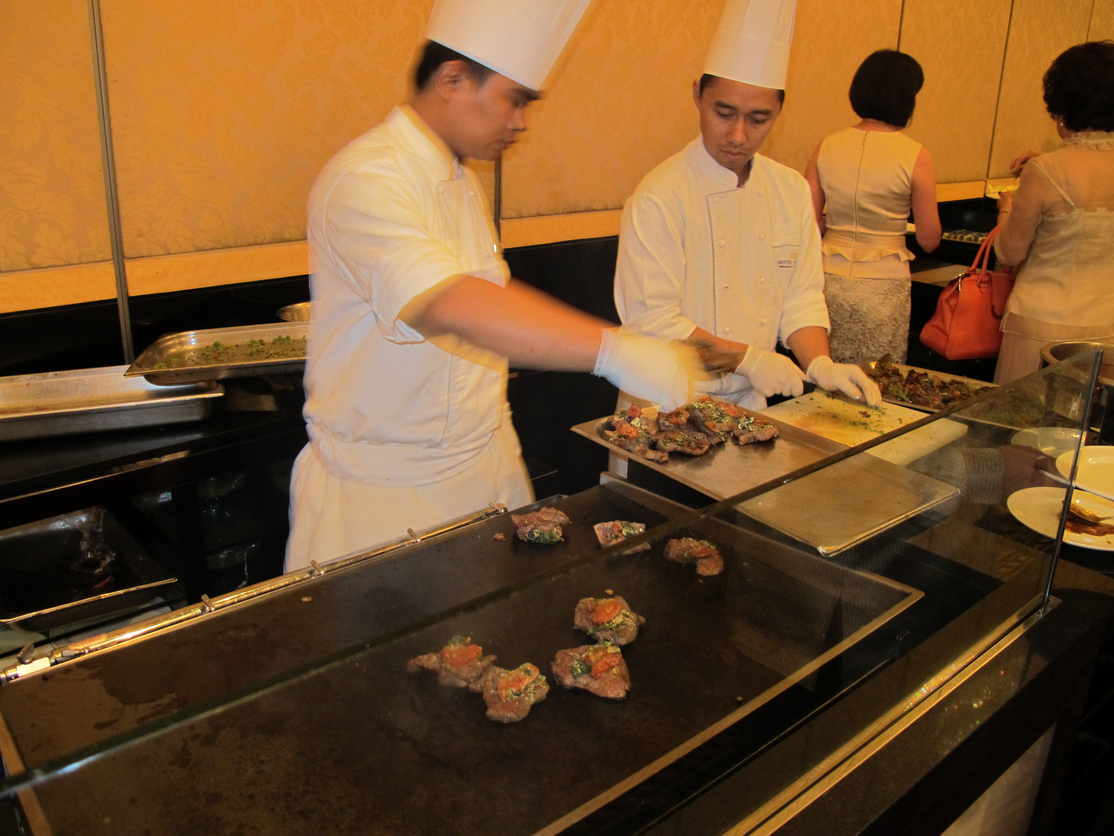 The luncheon was served buffet style. There were Westernized cuisine as well of Indonesian fare, and chefs were on site grilling steaks and fishes to each individual’s liking. The dessert spread was situated right in the middle of the ballroom surrounding the ice sculptures. How I wished to have four more stomachs to sample all the sweet treats.