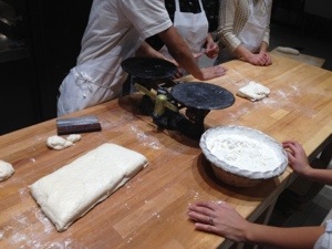 We had to work backwards in order to learn so much in 3 hours. We started out with the shaping of the bread as the dough was already made for us. We finished the class with making and kneading the dough and took the dough home with us.
