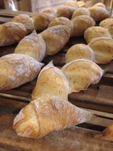 I stored all the bread in the freezer (in individual ziploc freezer bags) in preparation for their journey back to California. They traveled well and once I got back home, I continued to store the bread in the freezer. A quick reheat in the toaster oven and I’m right back in carb overload mode. So far I’ve made ham & cheese, grilled salmon and avocado sandwiches, bruschetta and crostinis. I haven’t tried the batards yet, but I imagine a simple schmear of butter will be just perfect.