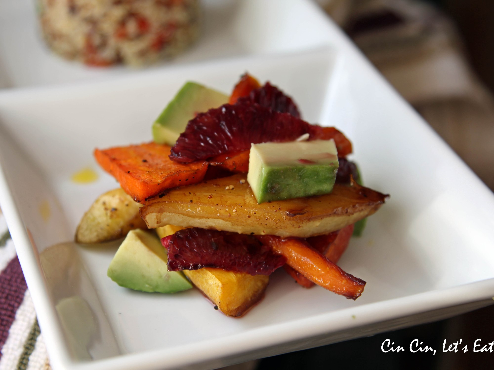Balsamic Roasted Carrots with Blood Orange and Avocado