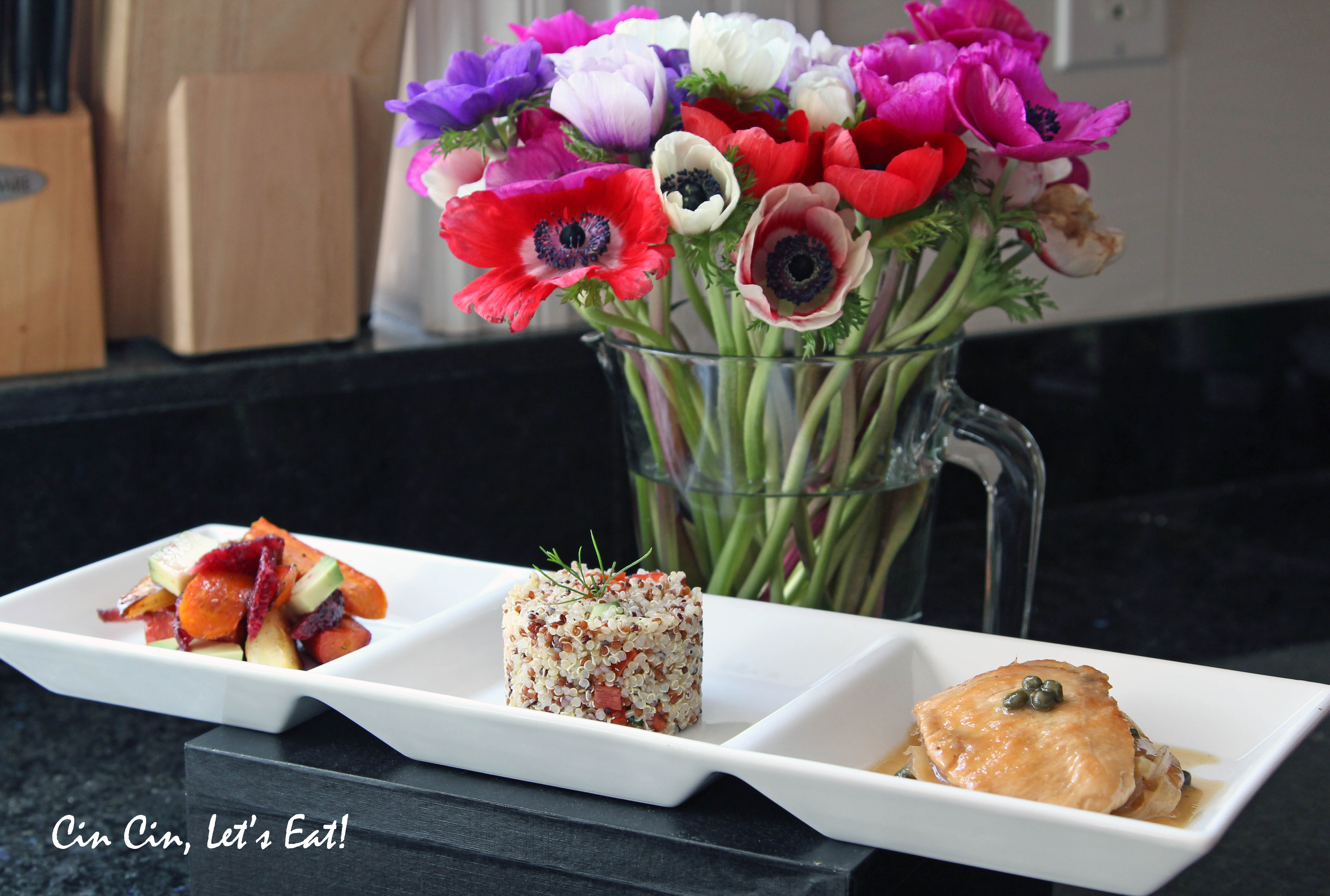 What an awesome week of weather we had here in California. Mid-70s with a light breeze, Spring is here! A trip to the local farmers’ market really inspired me to use some beautiful and colorful in-season produce and cook up this delightful lunch. Each dish is easy to make and I kept the number of ingredients to as few as possible to showcase their individual flavors. Definitely a great way to properly welcome Spring, wouldn’t you say?