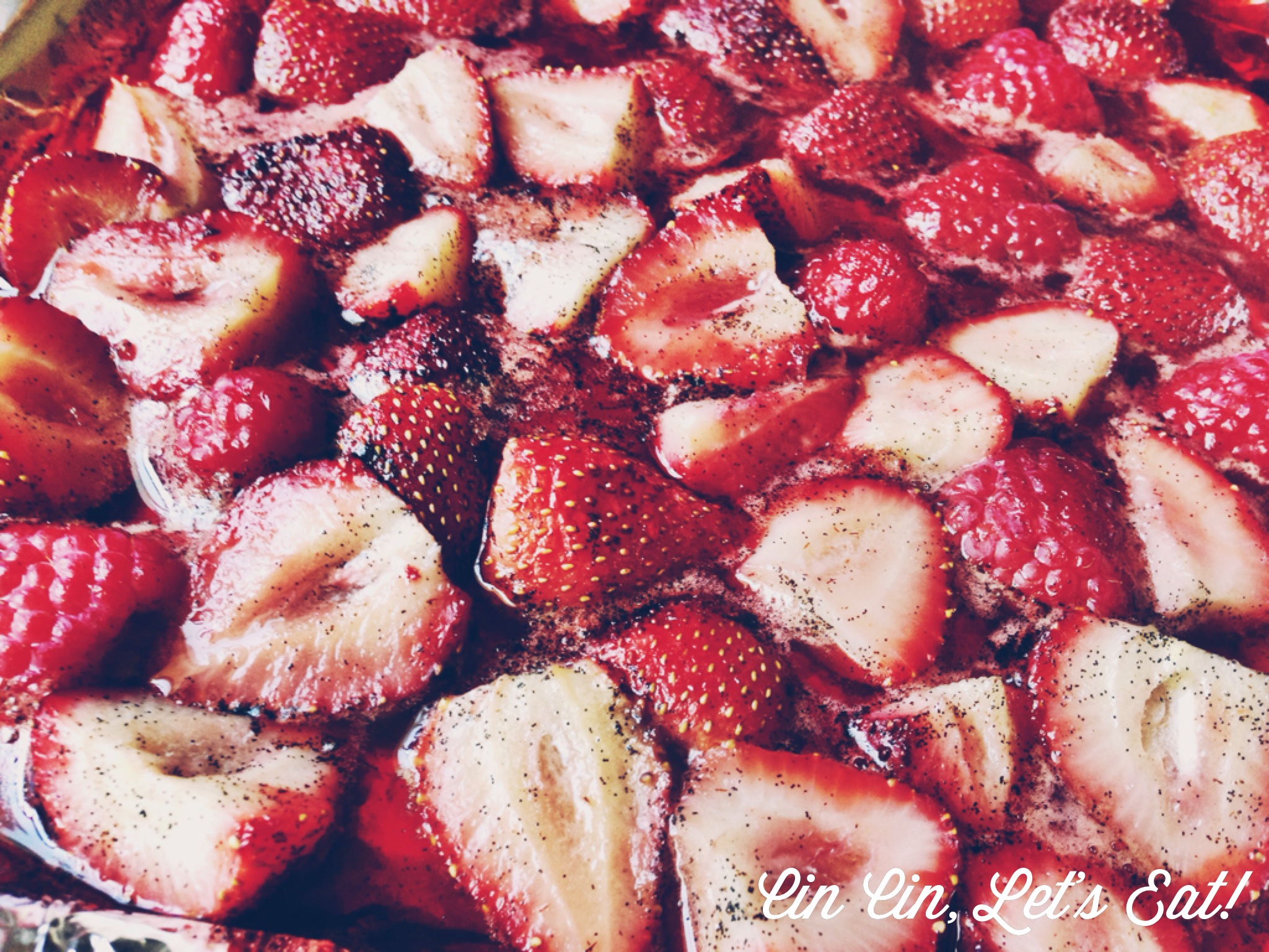 • Preheat oven to 425°. Combine strawberries, sugar, and vanilla extract in a 13x9x2 inches baking pan. Toss to combine. Roast berries, stirring occasionally, until juices are bubbling, 15–20 minutes. Let cool.