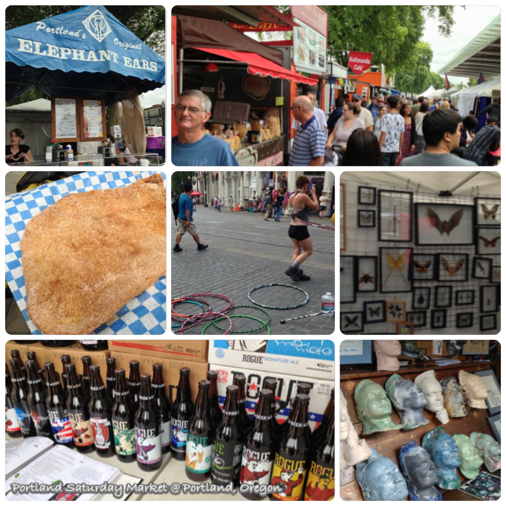 We drove towards the harbor, where the Saturday Market takes place each week. It’s a huge outdoor bazaar that takes over a few city blocks, and it is filled with crafts, jewelry, as well as some more eclectic and strange merchandises. We shared a giant elephant ear as a snack, which is a fried dough coated with cinnamon sugar.
